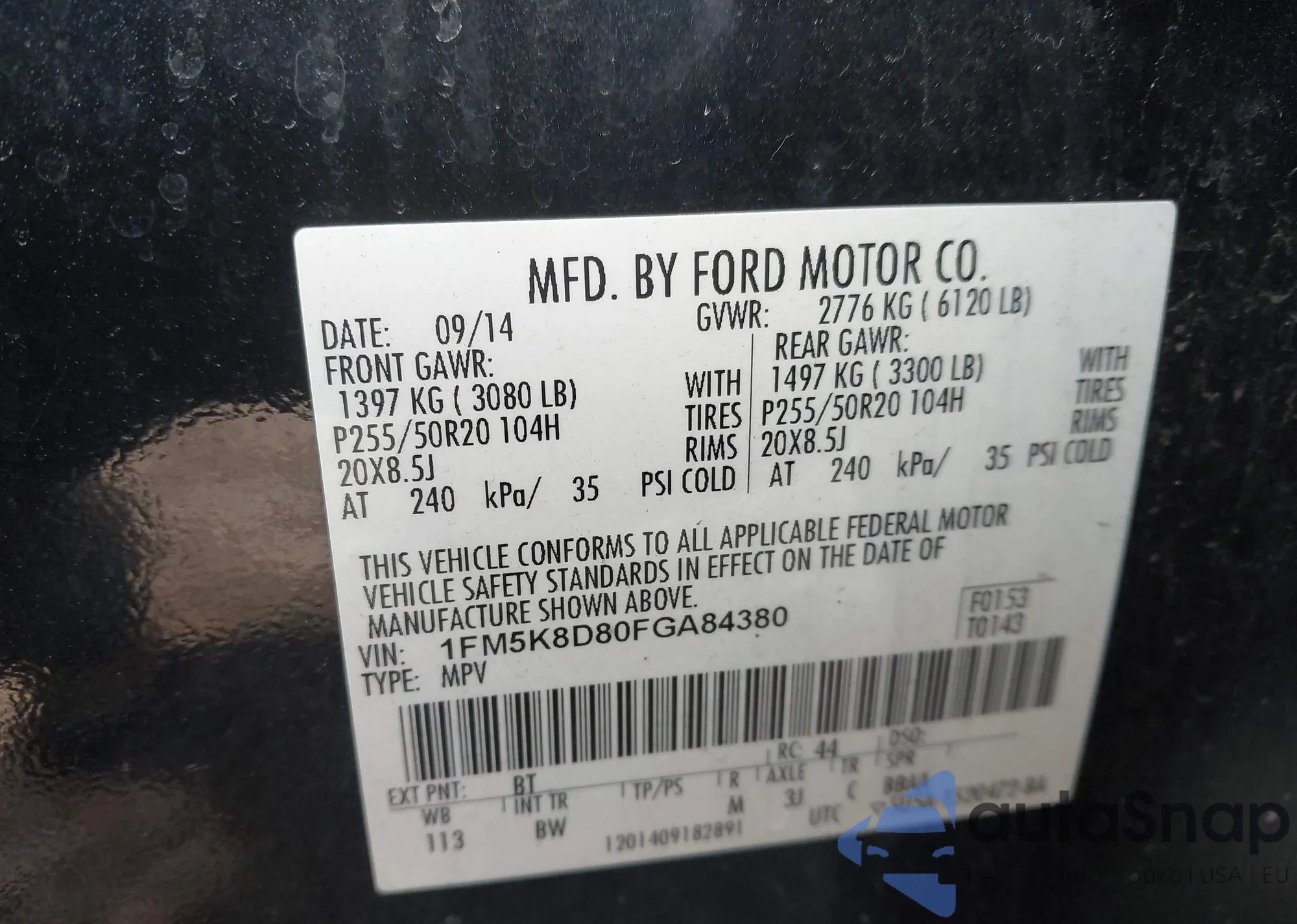 • VIN 1FM5K8D80FGA84380
