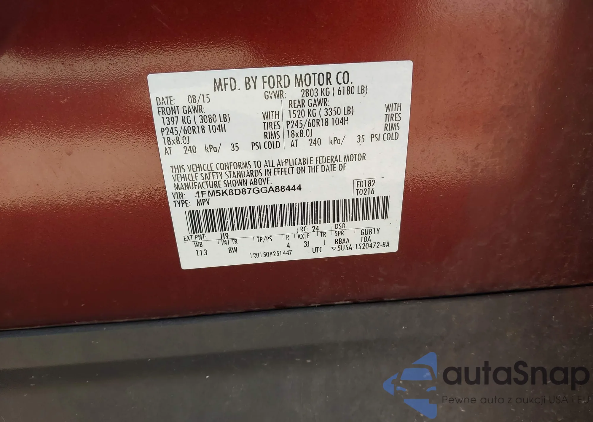 LOT: 74254385 VIN: 1FM5K8D87FGC58817