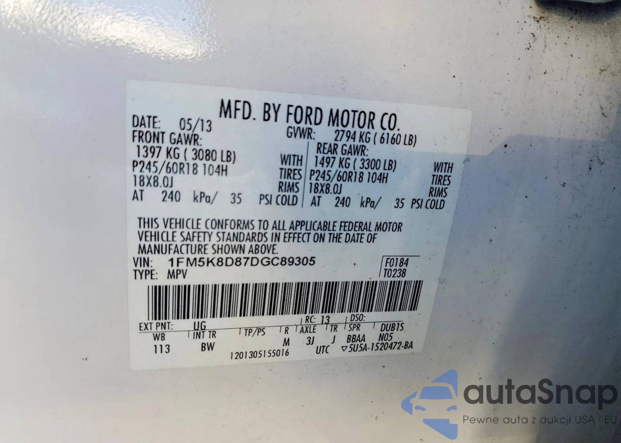 LOT: 76129955 VIN: 1FM5K8D87DGC89305