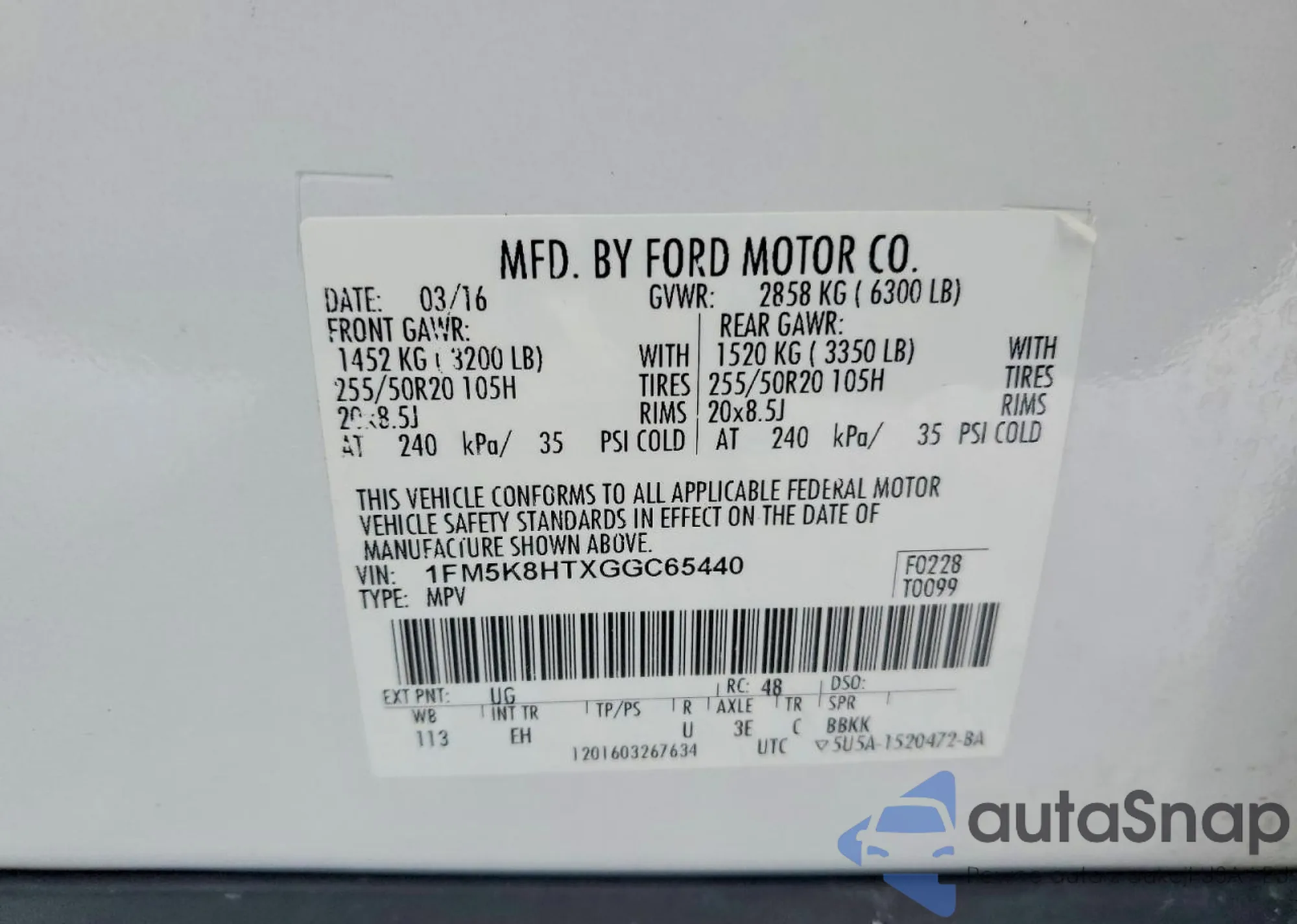• VIN 1FM5K8HTXGGC65440