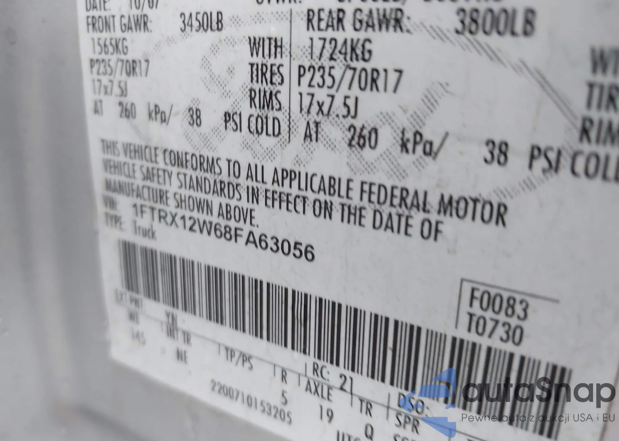 • VIN 1FTRX12W68FA63056