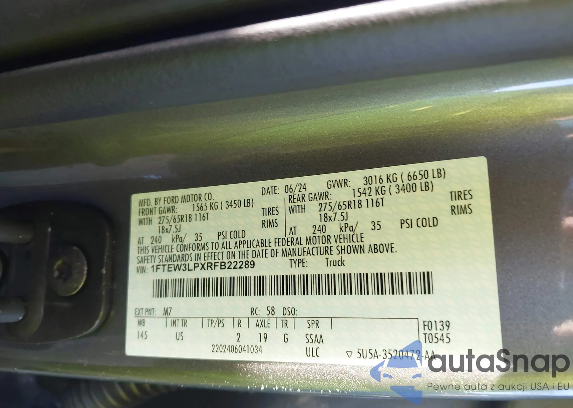 LOT: 43891983 VIN: 1FTEW3LPXRFB22289