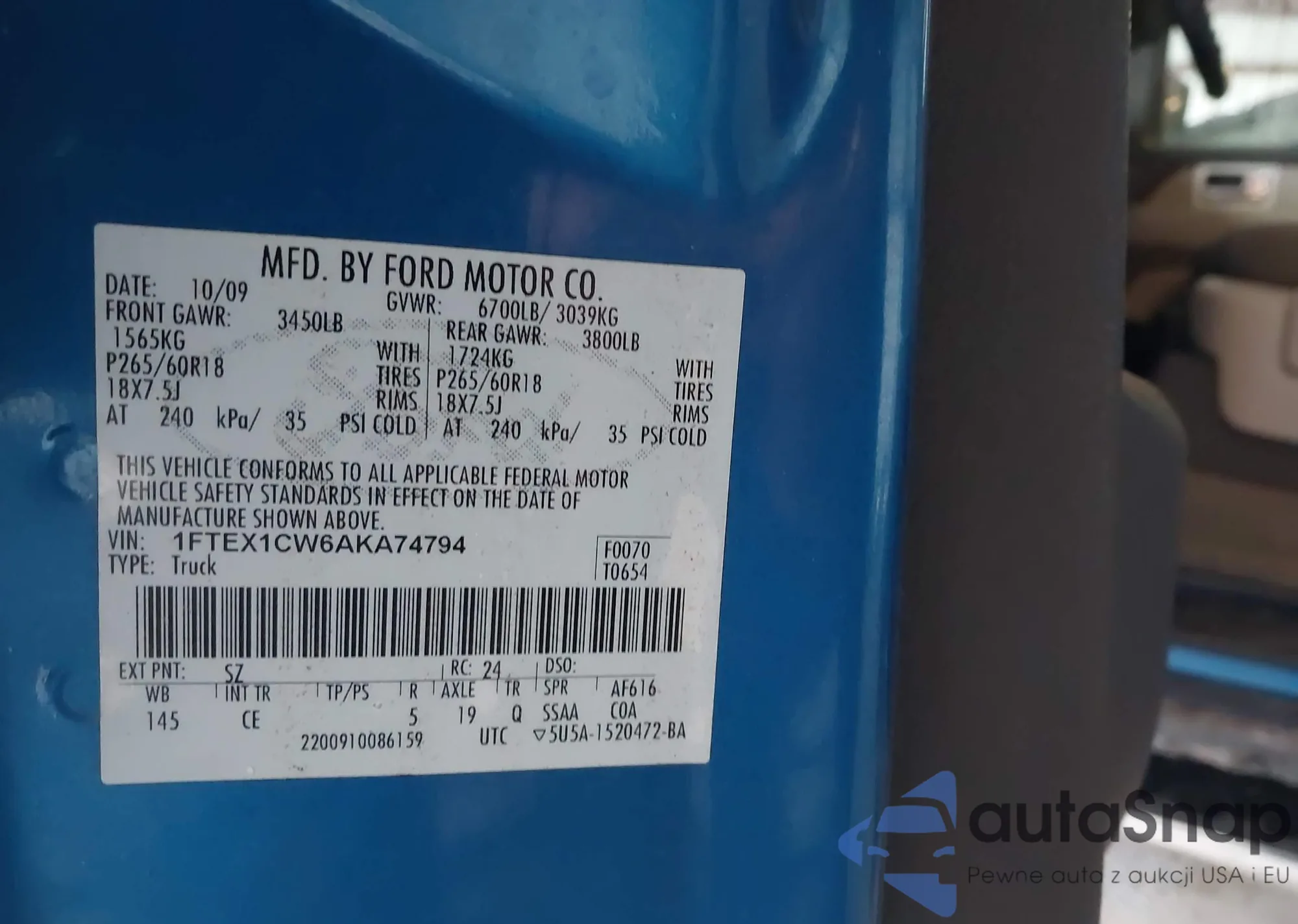 • VIN 1FTPW125X5KE93516