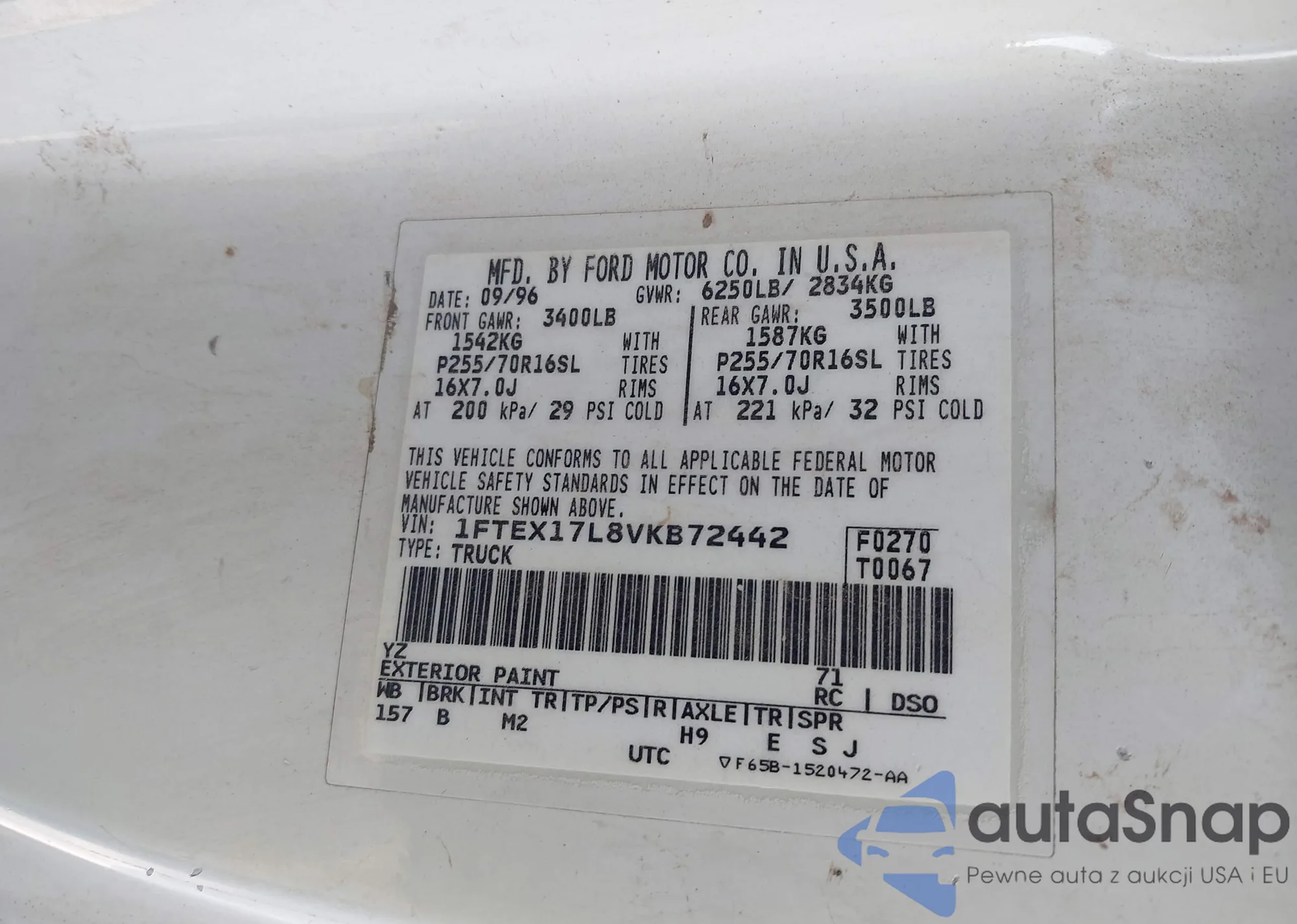 LOT: 43509239 VIN: 1FTDX172XVNA93002