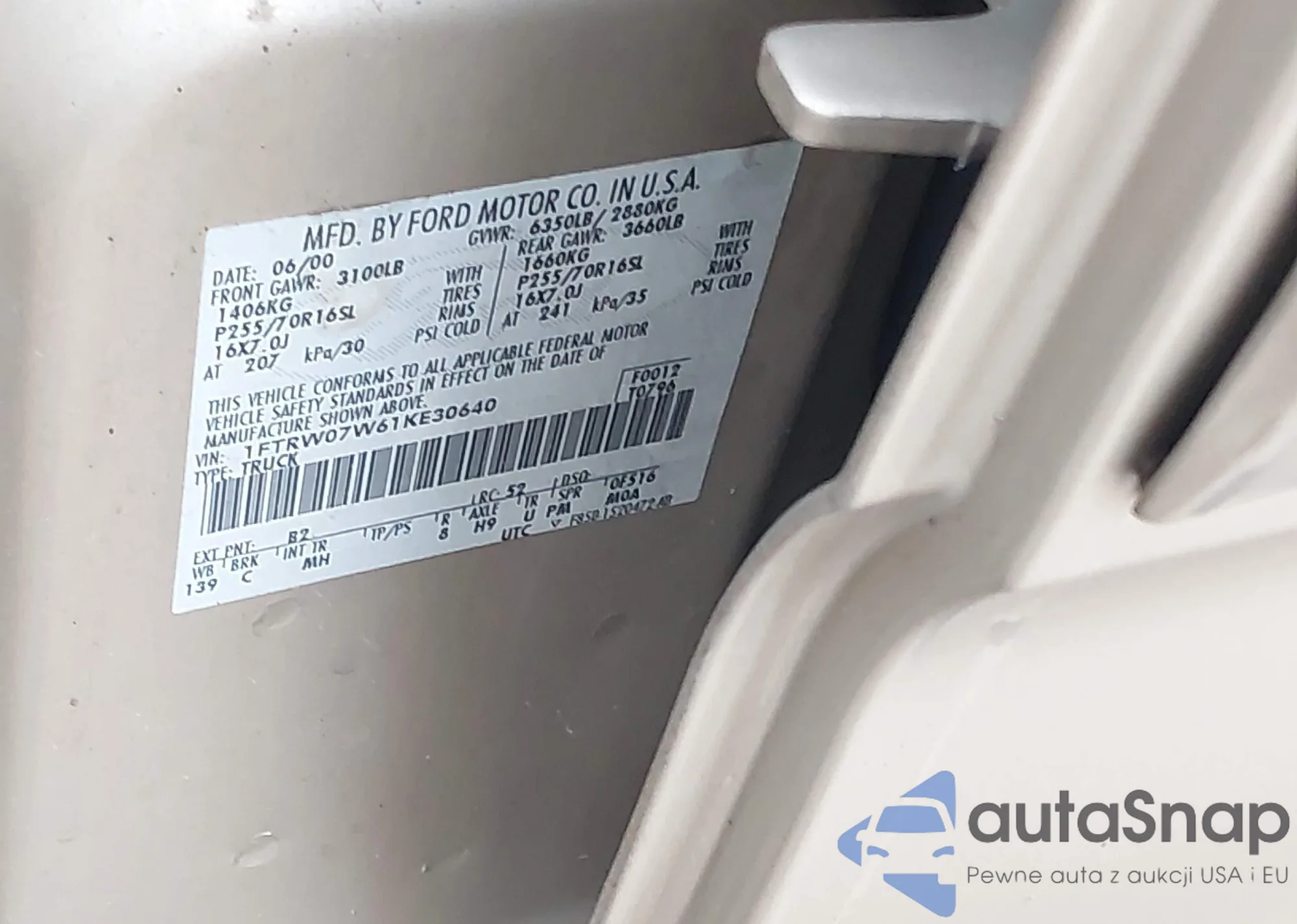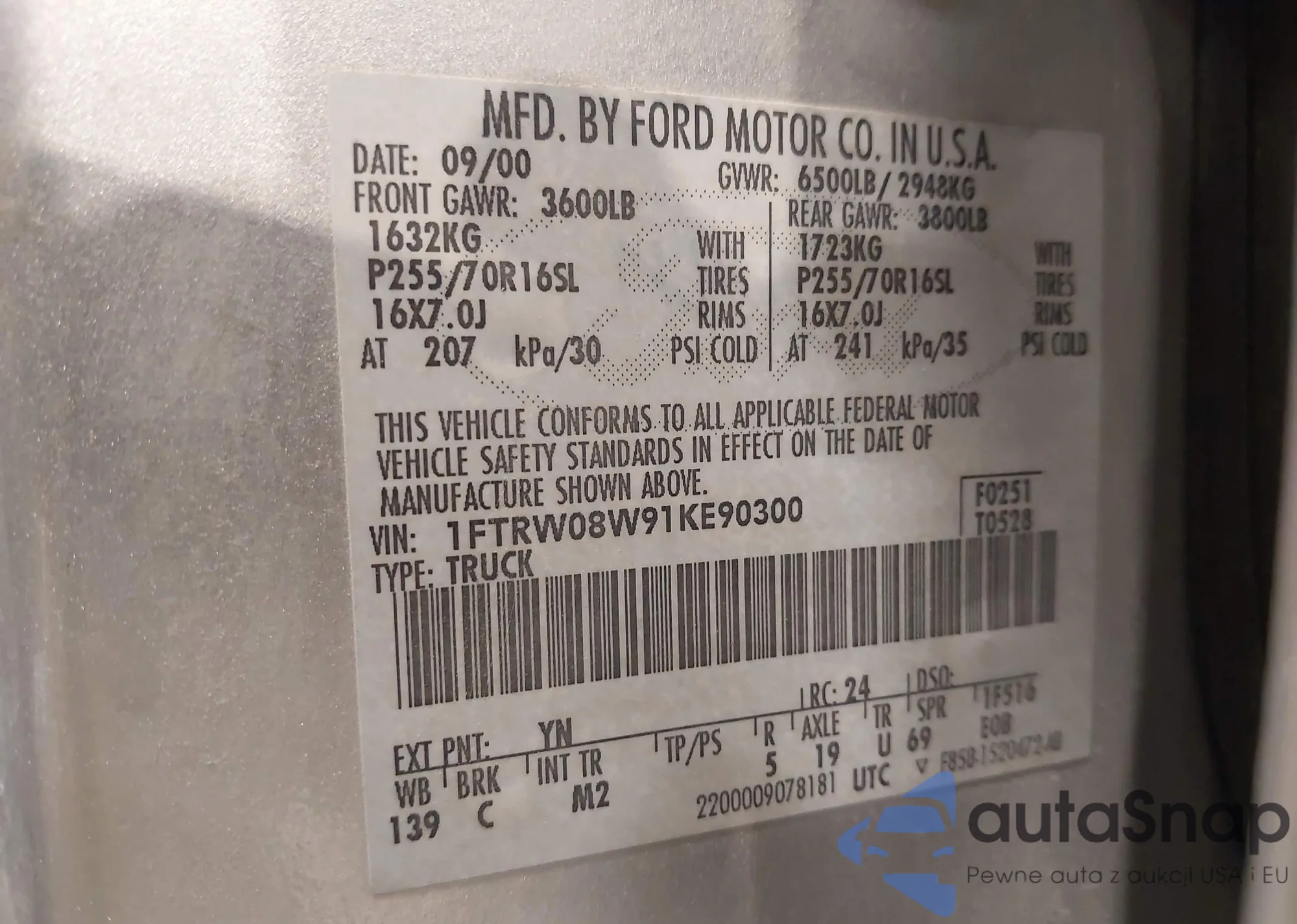 • VIN 1FTRW08W91KE90300