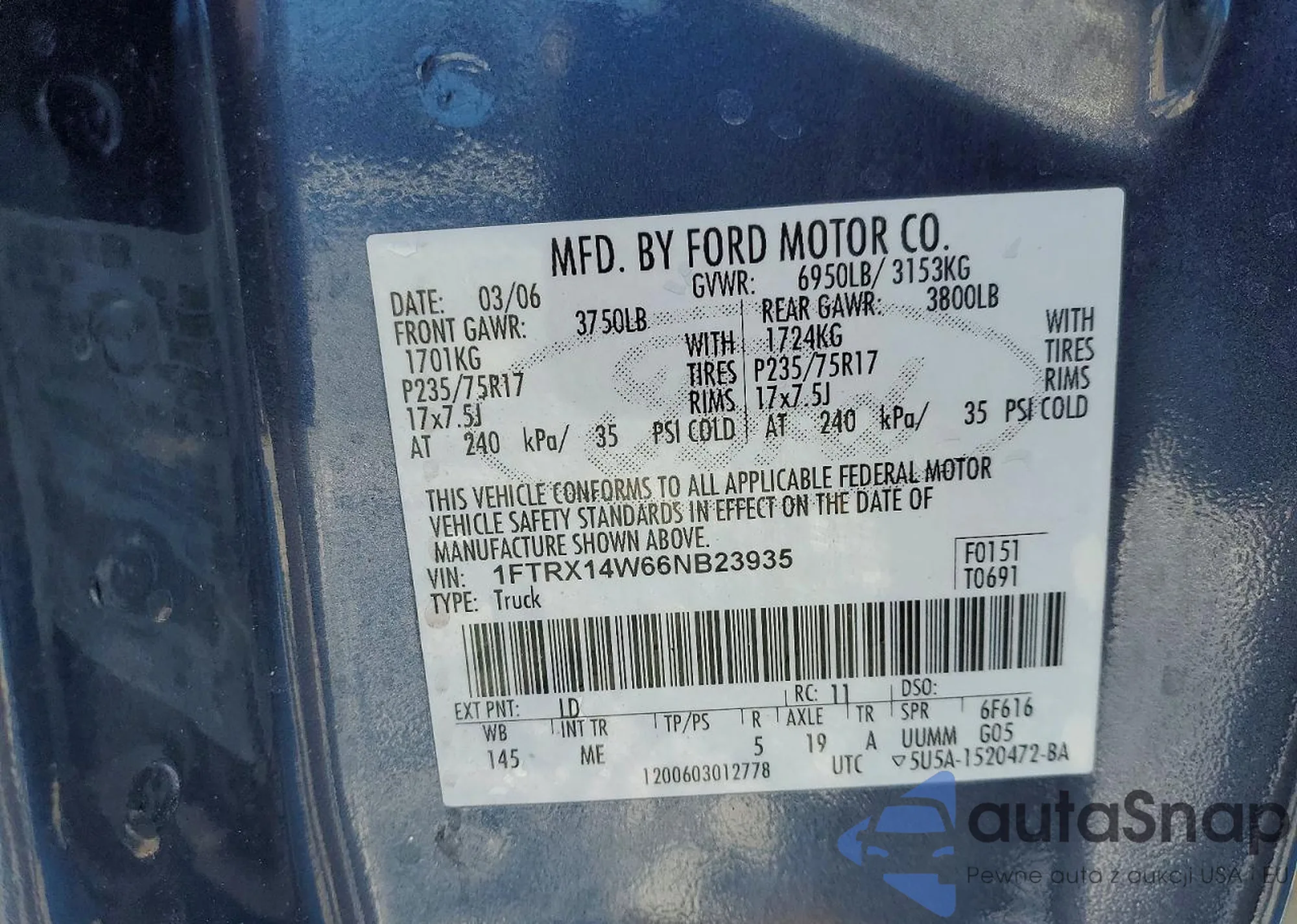 • VIN 1FTRX14W66NB23935