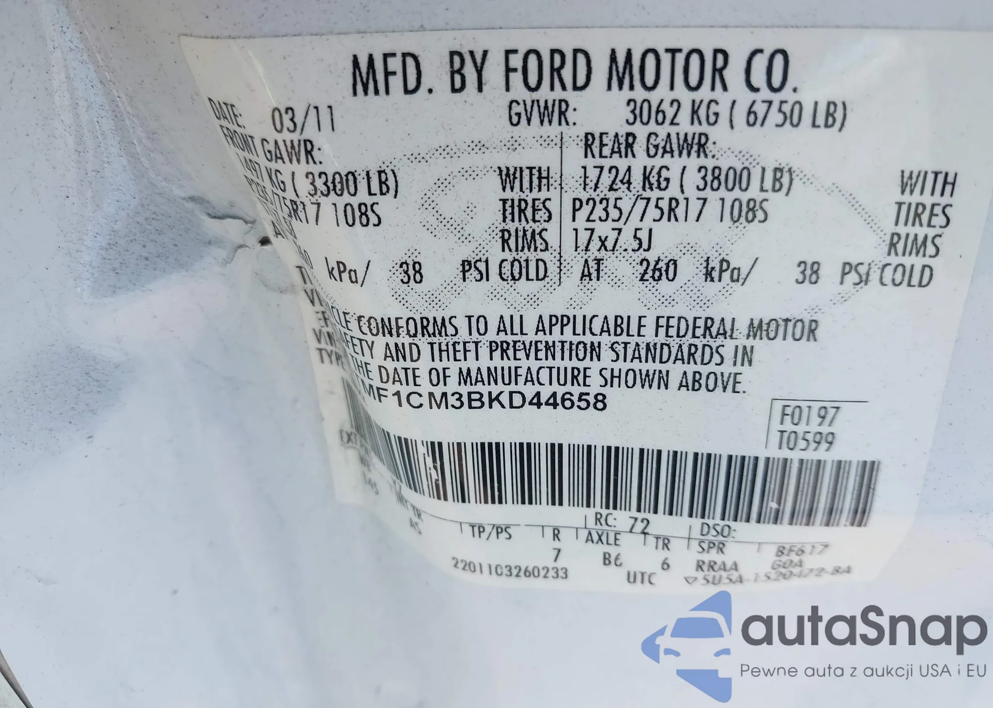 • VIN 1FTMF1CM3BKD44658