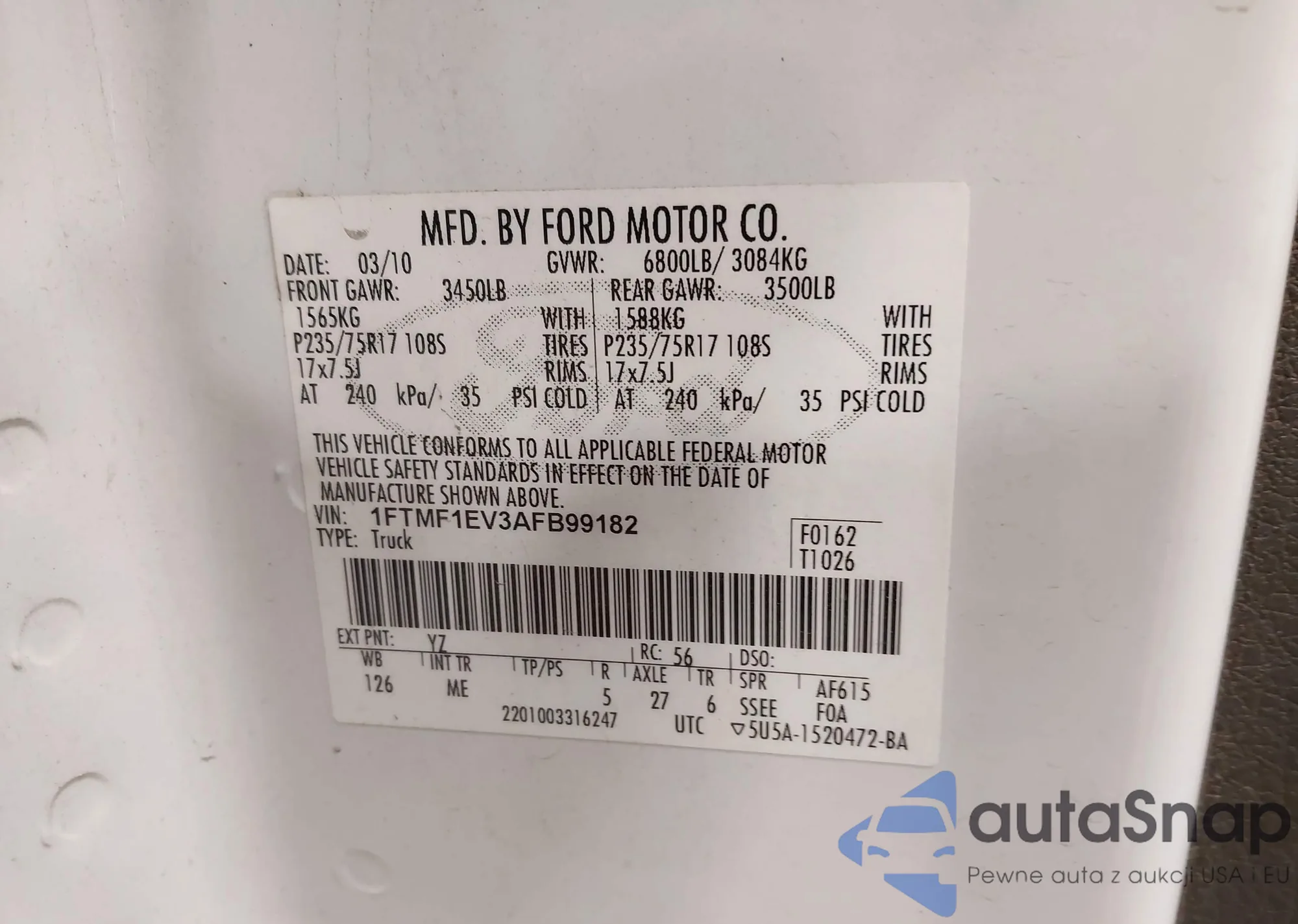 LOT: 44635487 VIN: 1FTFW1EV7AFC08152