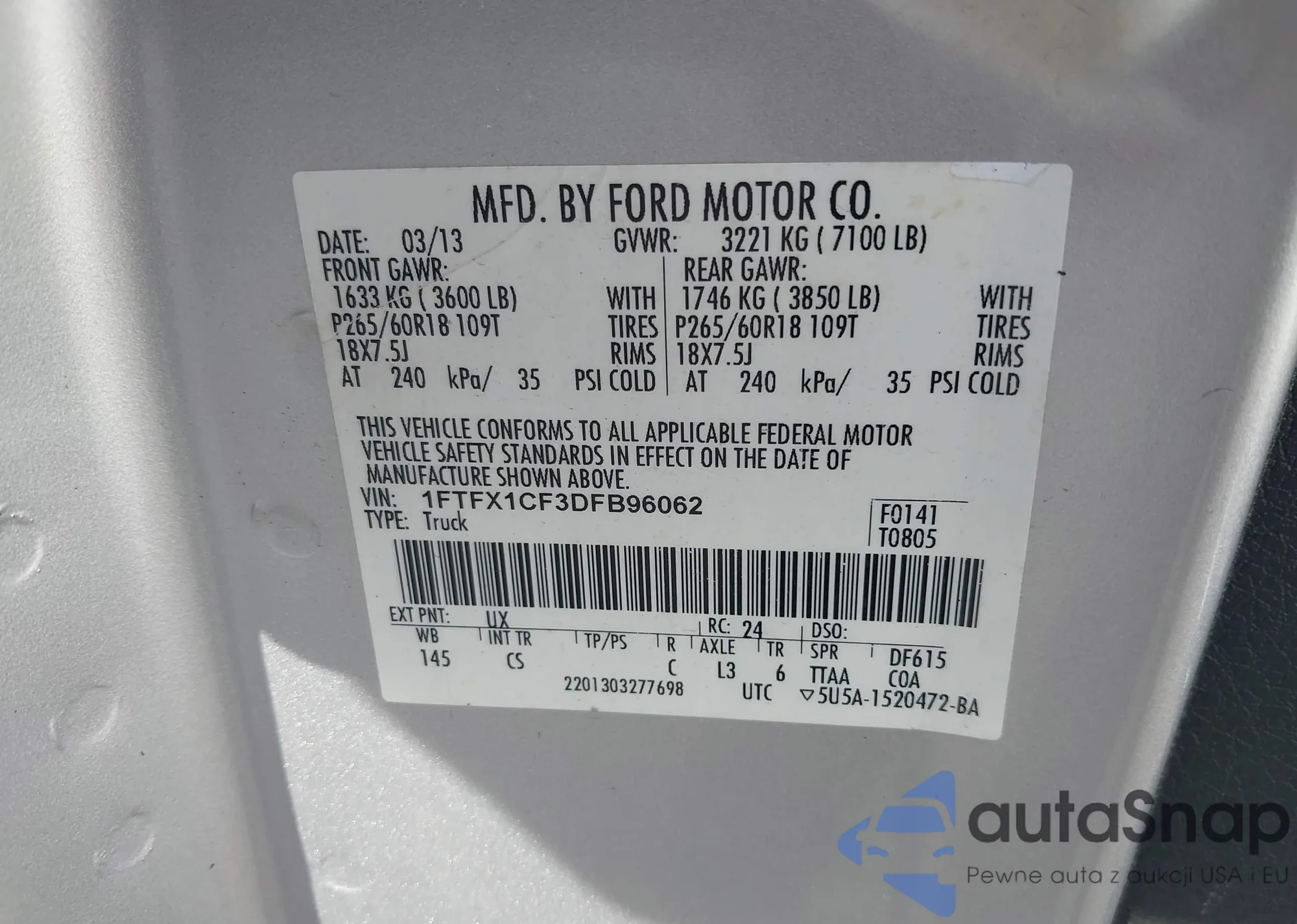 • VIN 1FTFX1CF3DFB96062