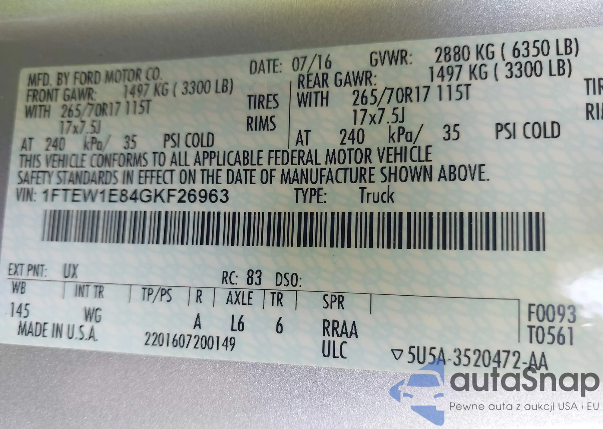 LOT: 43274326 VIN: 1FTEW1E84GKF26963