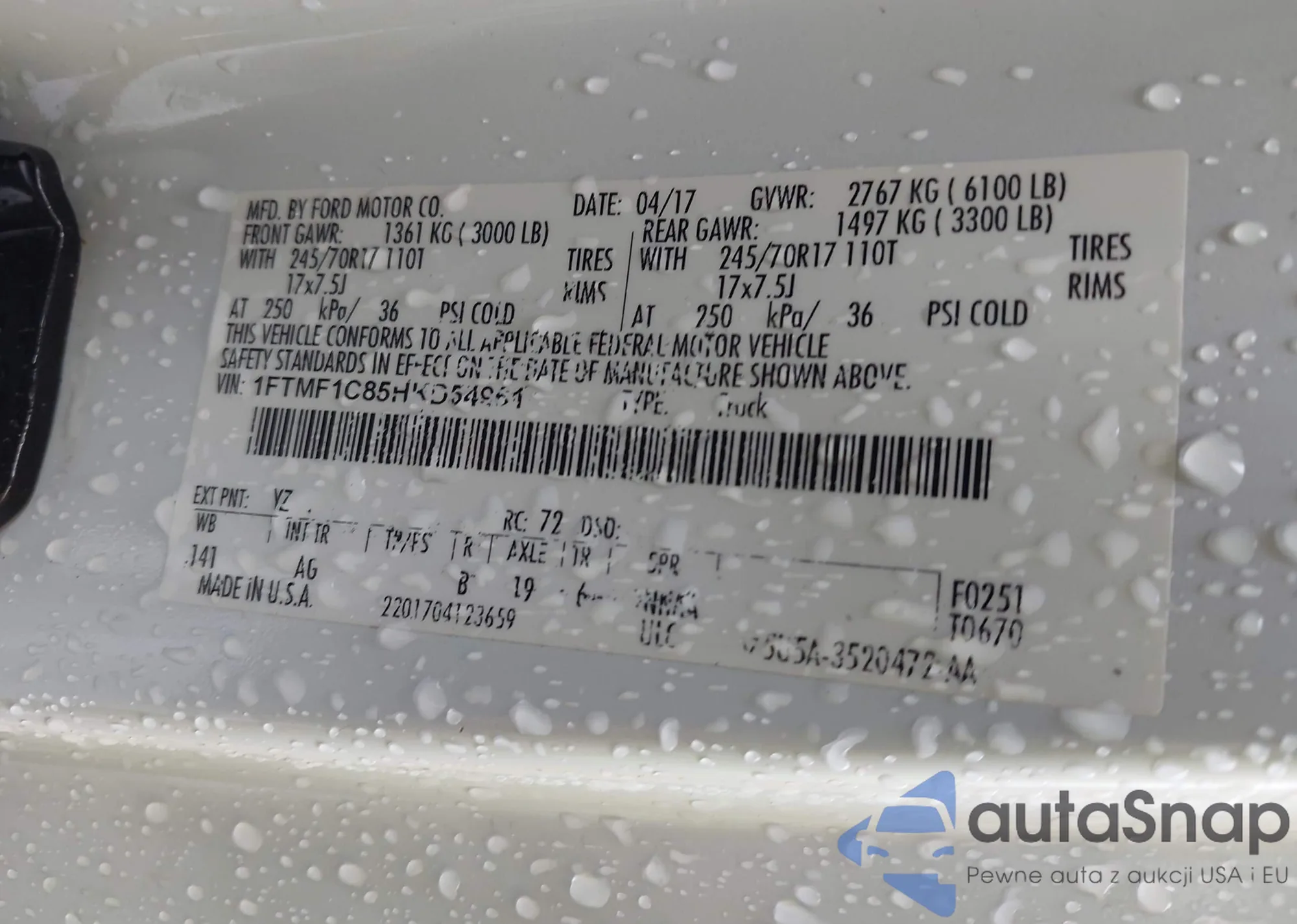 LOT: 43369154 VIN: 1FTMF1C85HKD54961