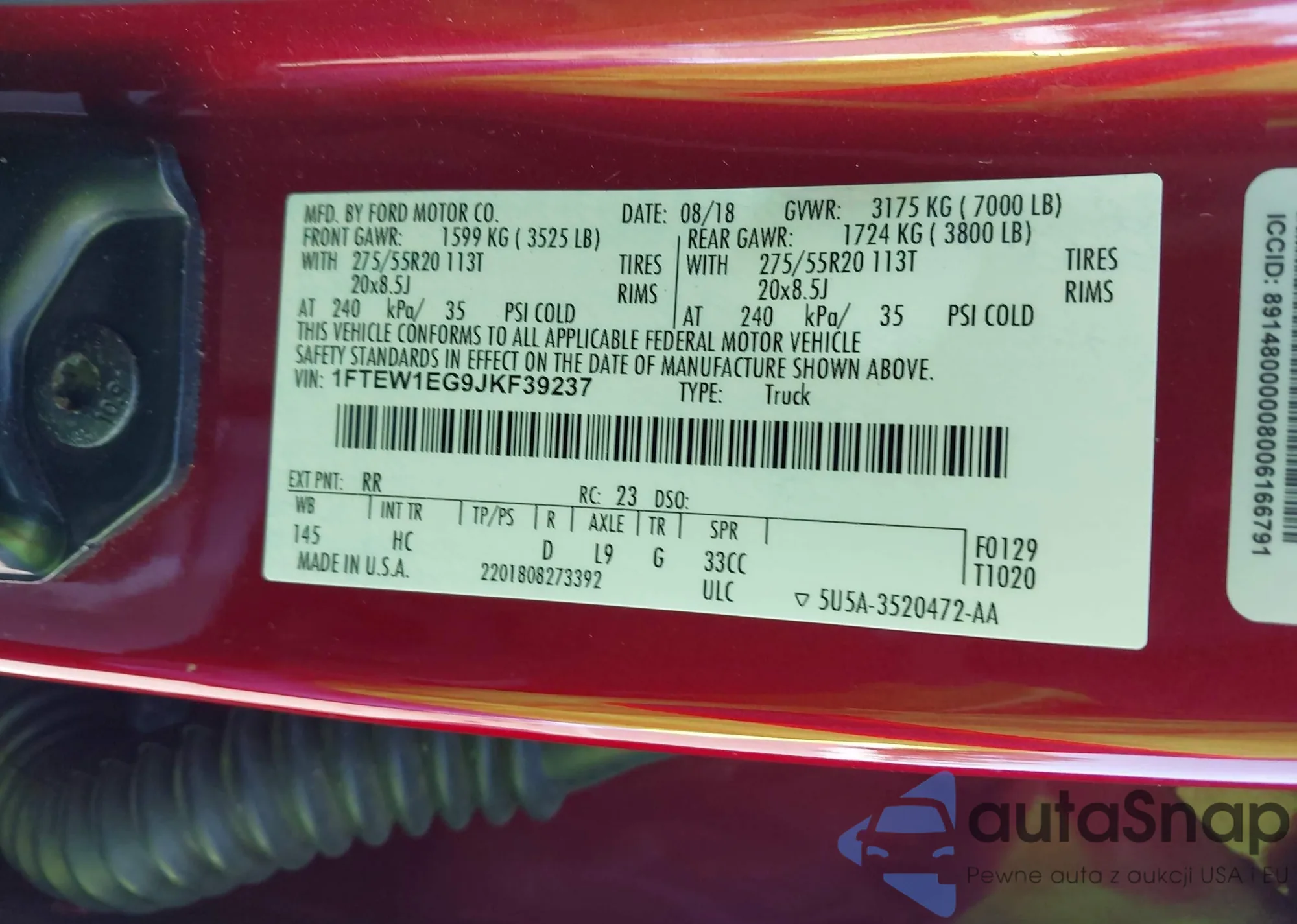 • VIN 1FTEW1EG9JKF39237