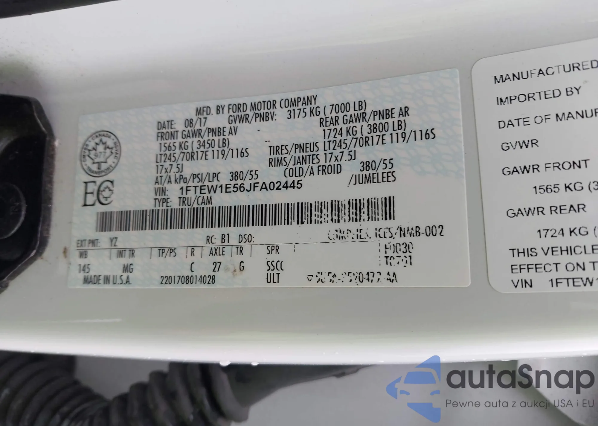 • VIN 1FTEW1E56JFA02445