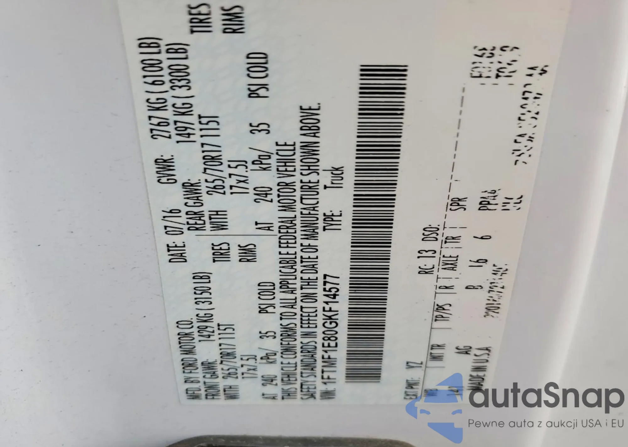 • VIN 1FTMF1E80GKF14577