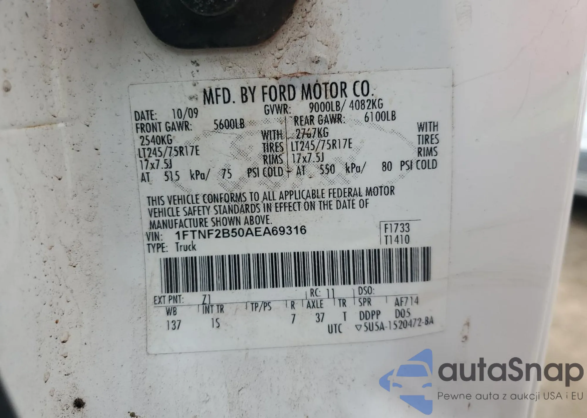 LOT: 66504165 VIN: 1FTNF2B50AEA69316