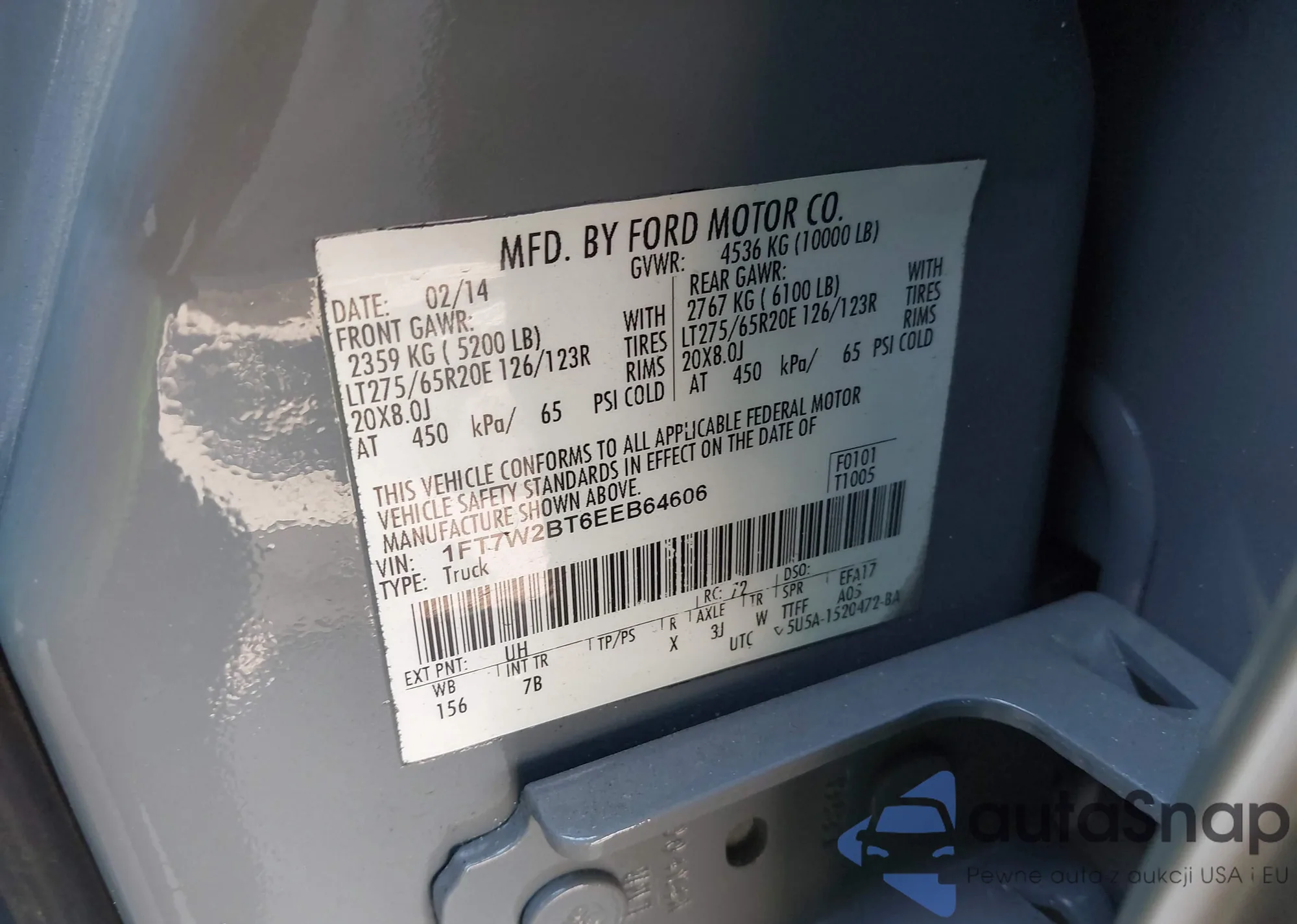 • VIN 1FT7W2BT6EEB64606