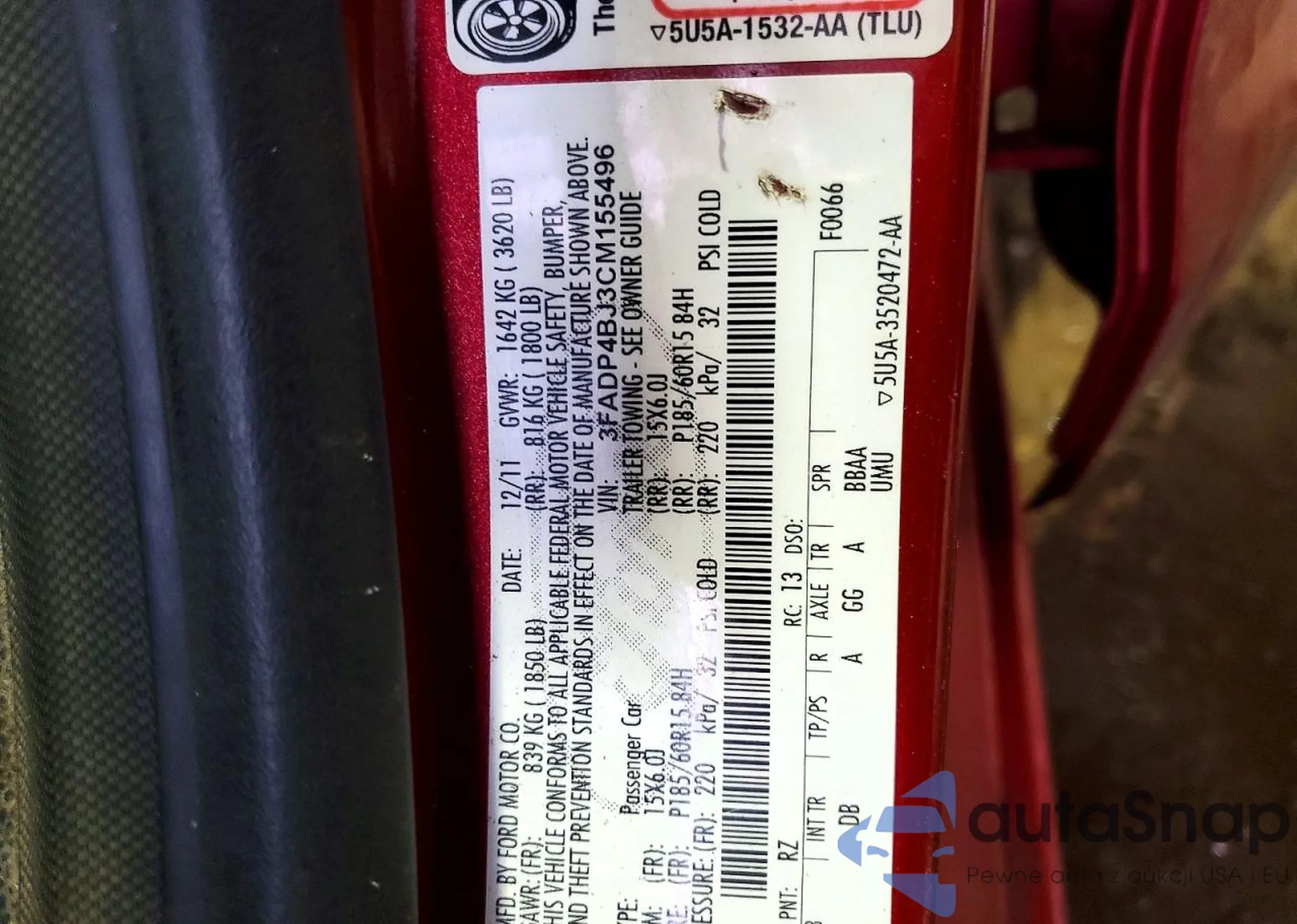 LOT: 97975155 VIN: 3FADP4CJ7CM171893