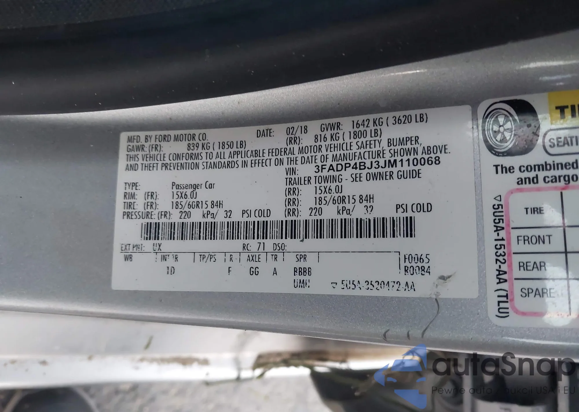 • VIN 3FADP4BJ3JM110068