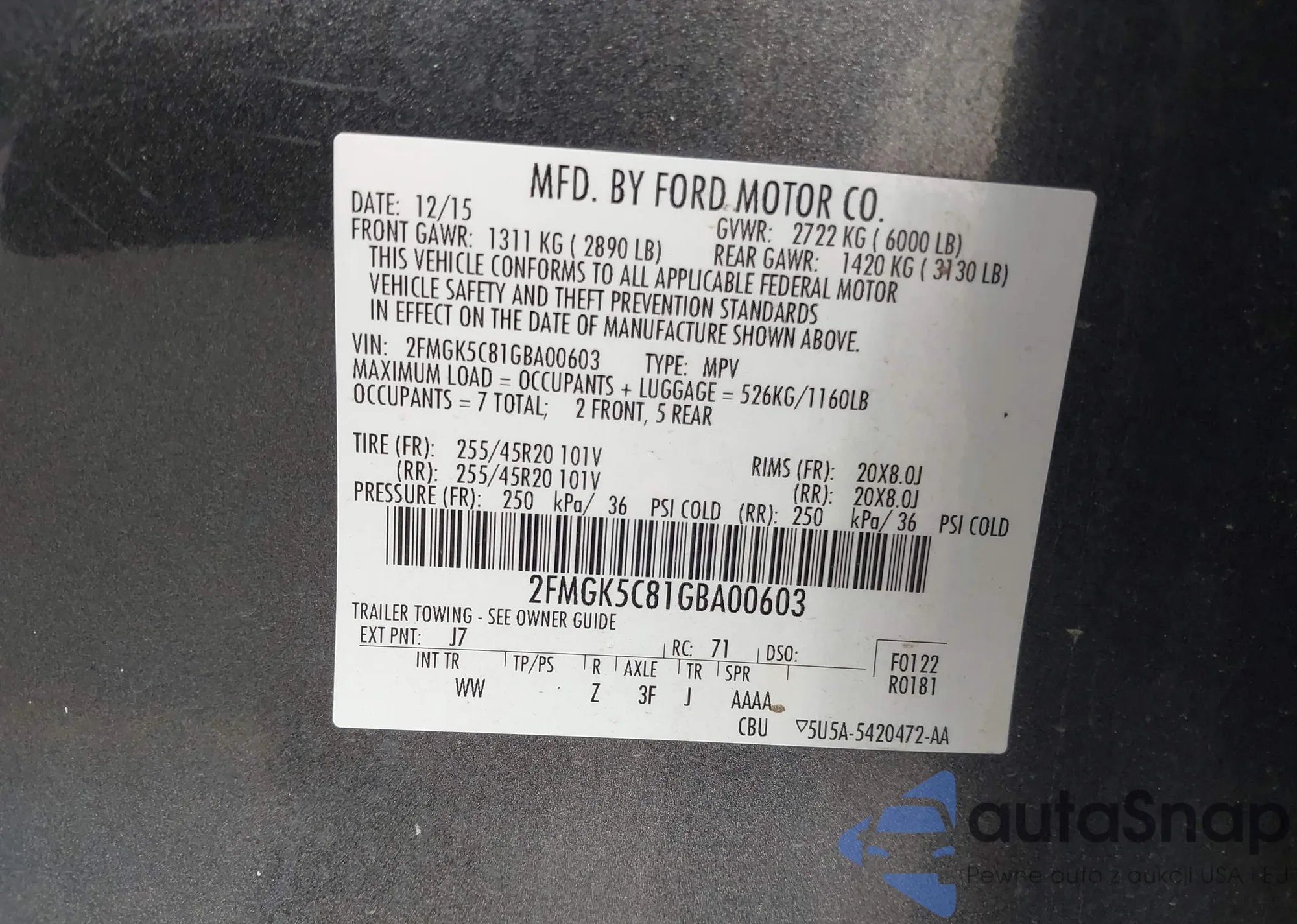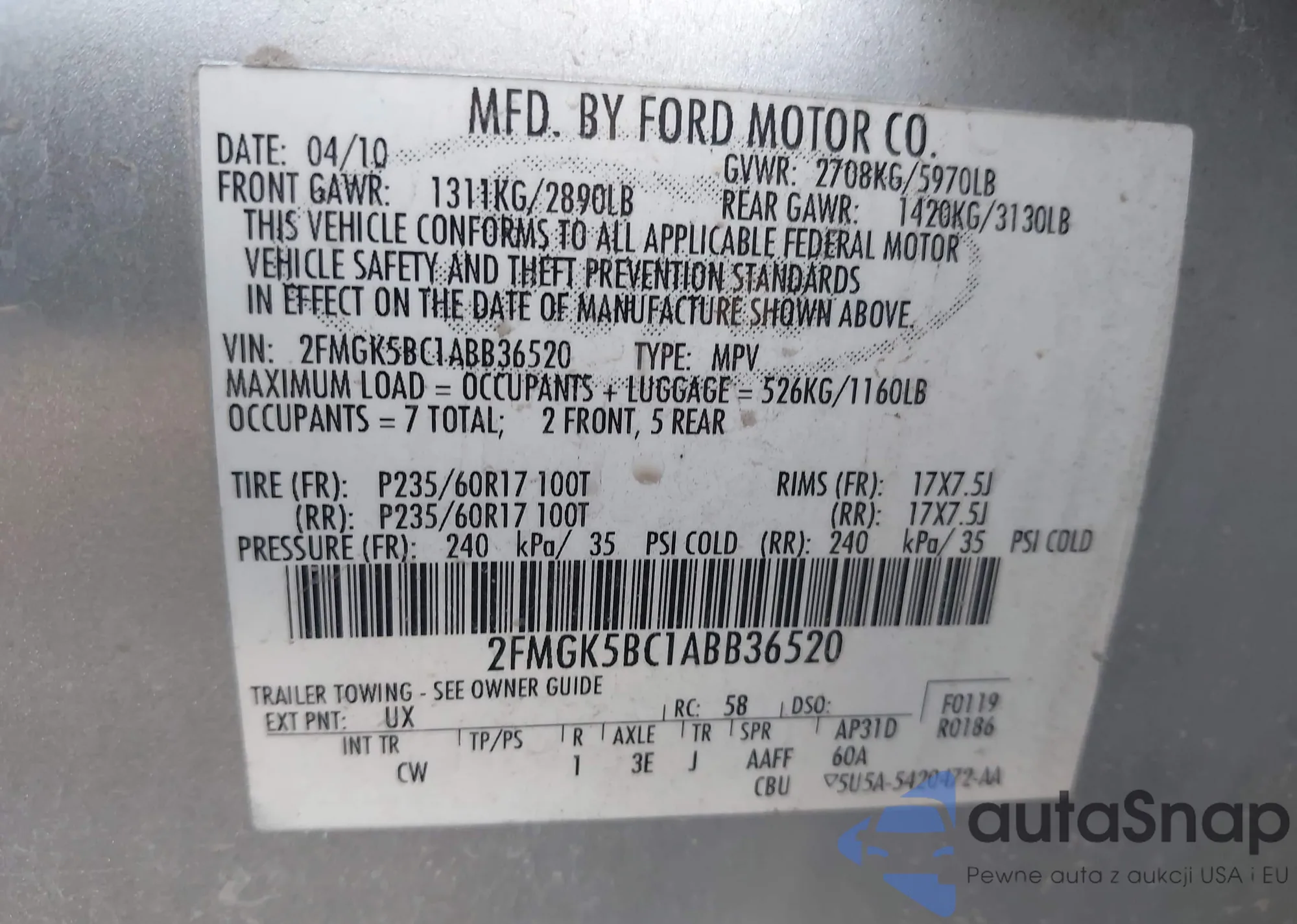 • VIN 2FMGK5BCXABA58481