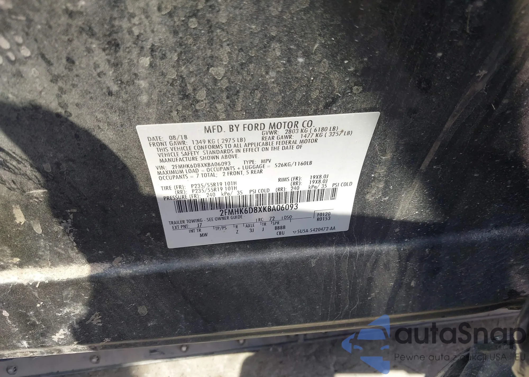 • VIN 2FMHK6DT0KBA18242