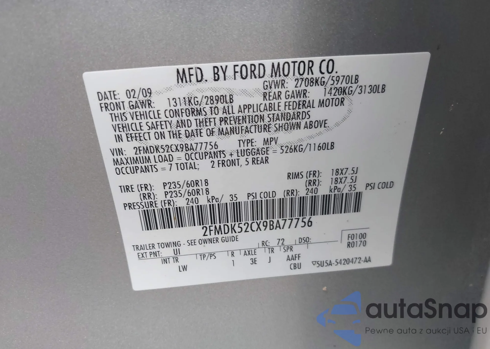 • VIN 2FMDK52CX9BA77756