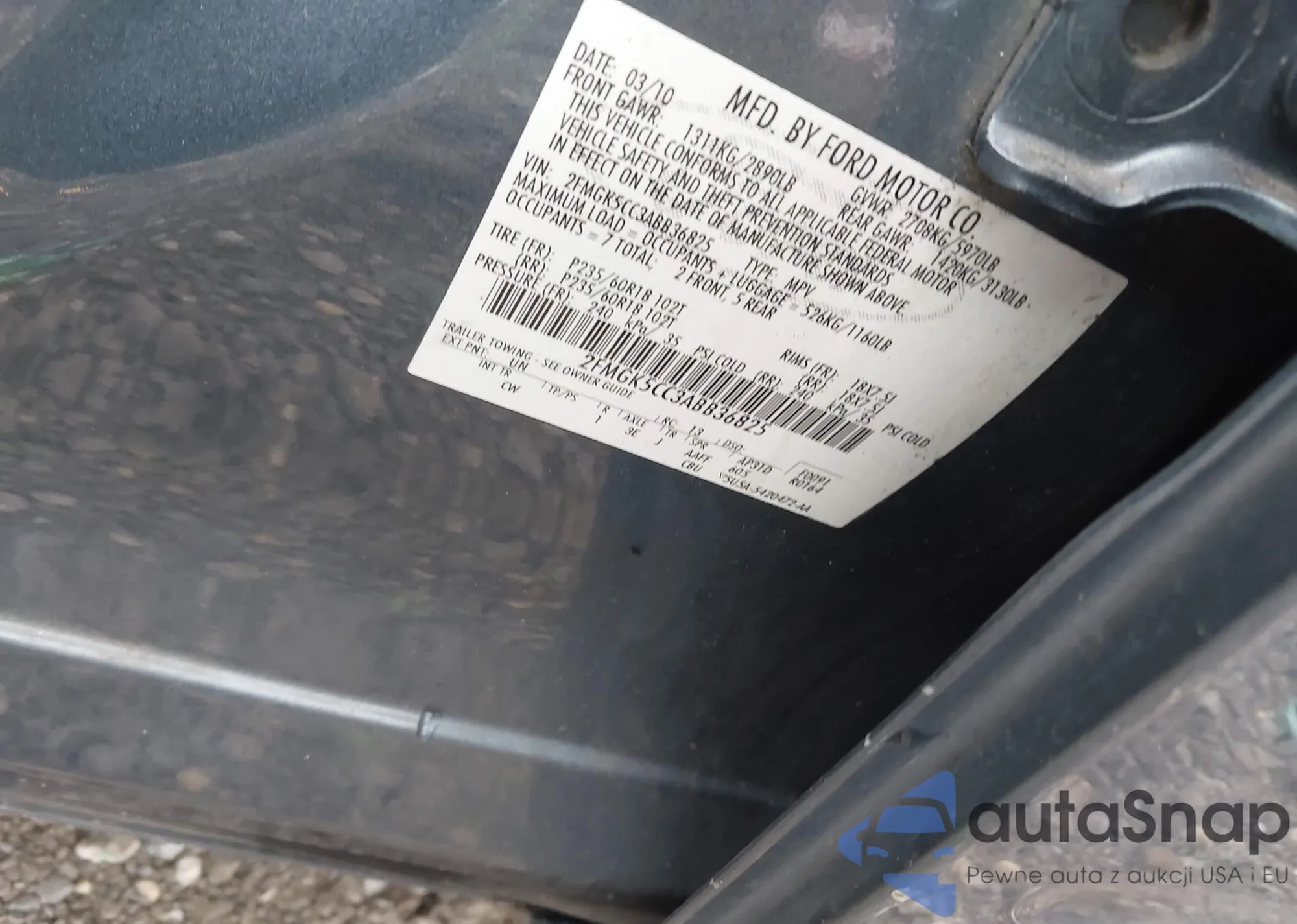 • VIN 2FMGK5CC3ABB36825