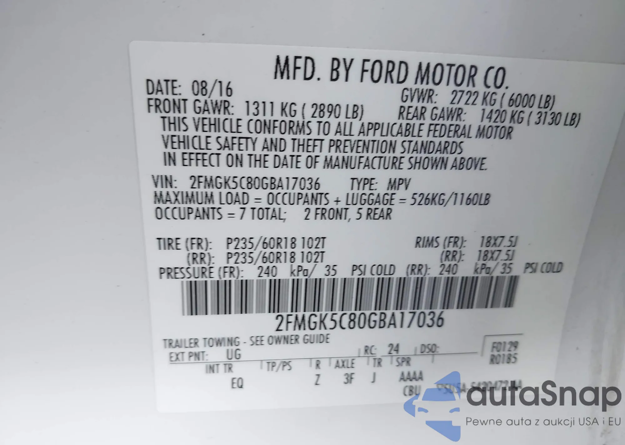 • VIN 2FMGK5C80GBA17036