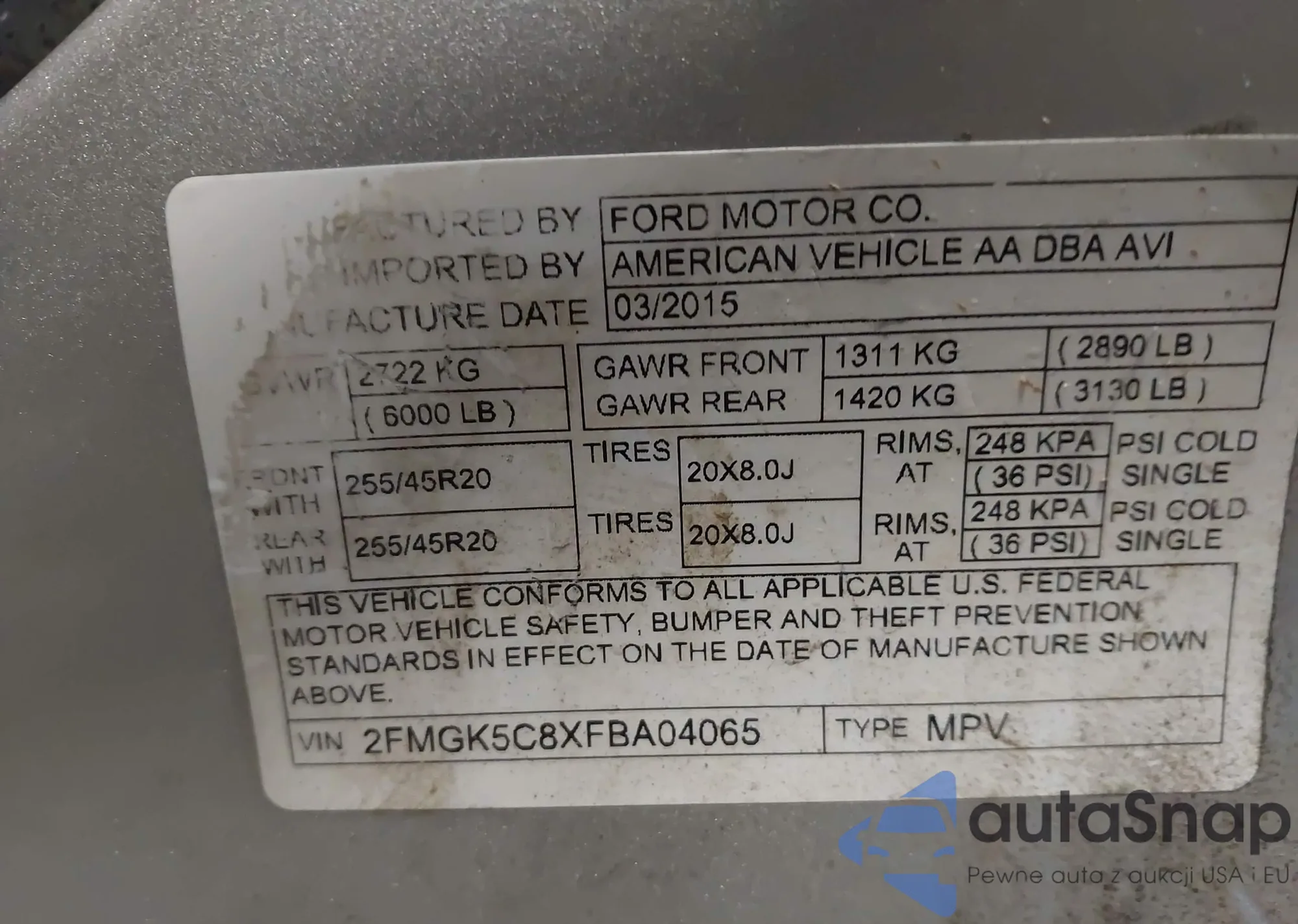 • VIN 2FMGK5C8XFBA04065