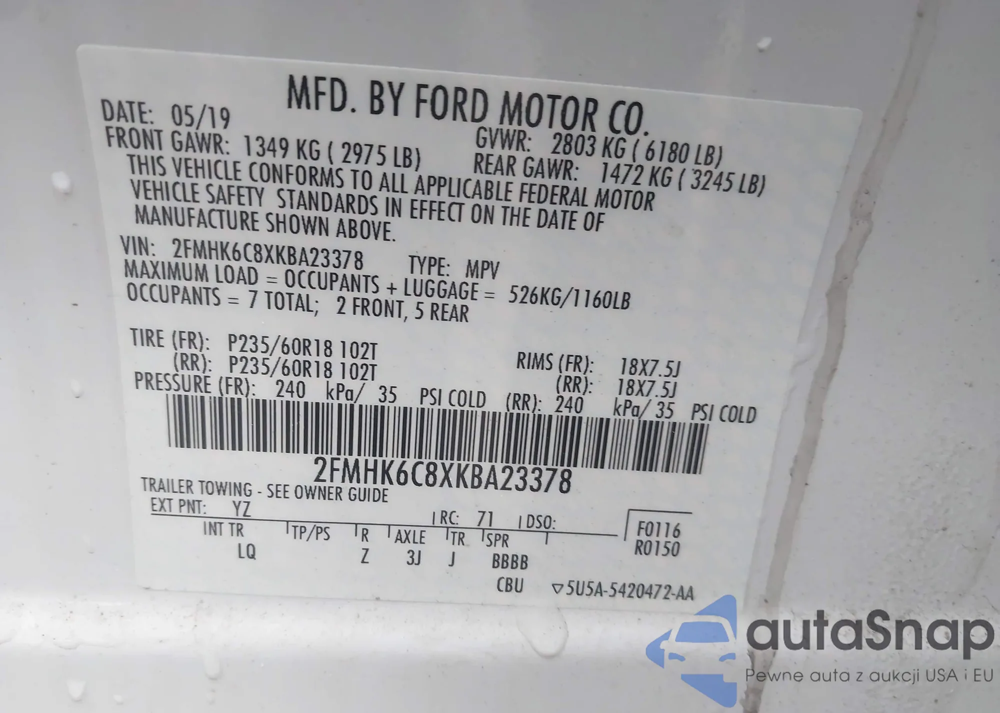 • VIN 2FMGK5C82KBA18228