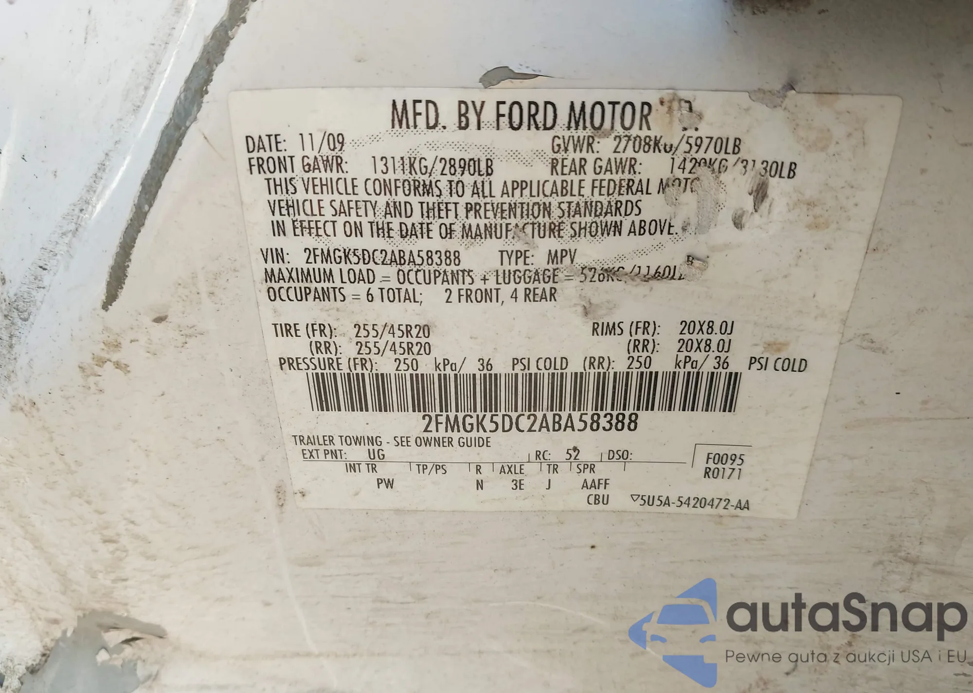 • VIN 2FMGK5DC2ABA58388