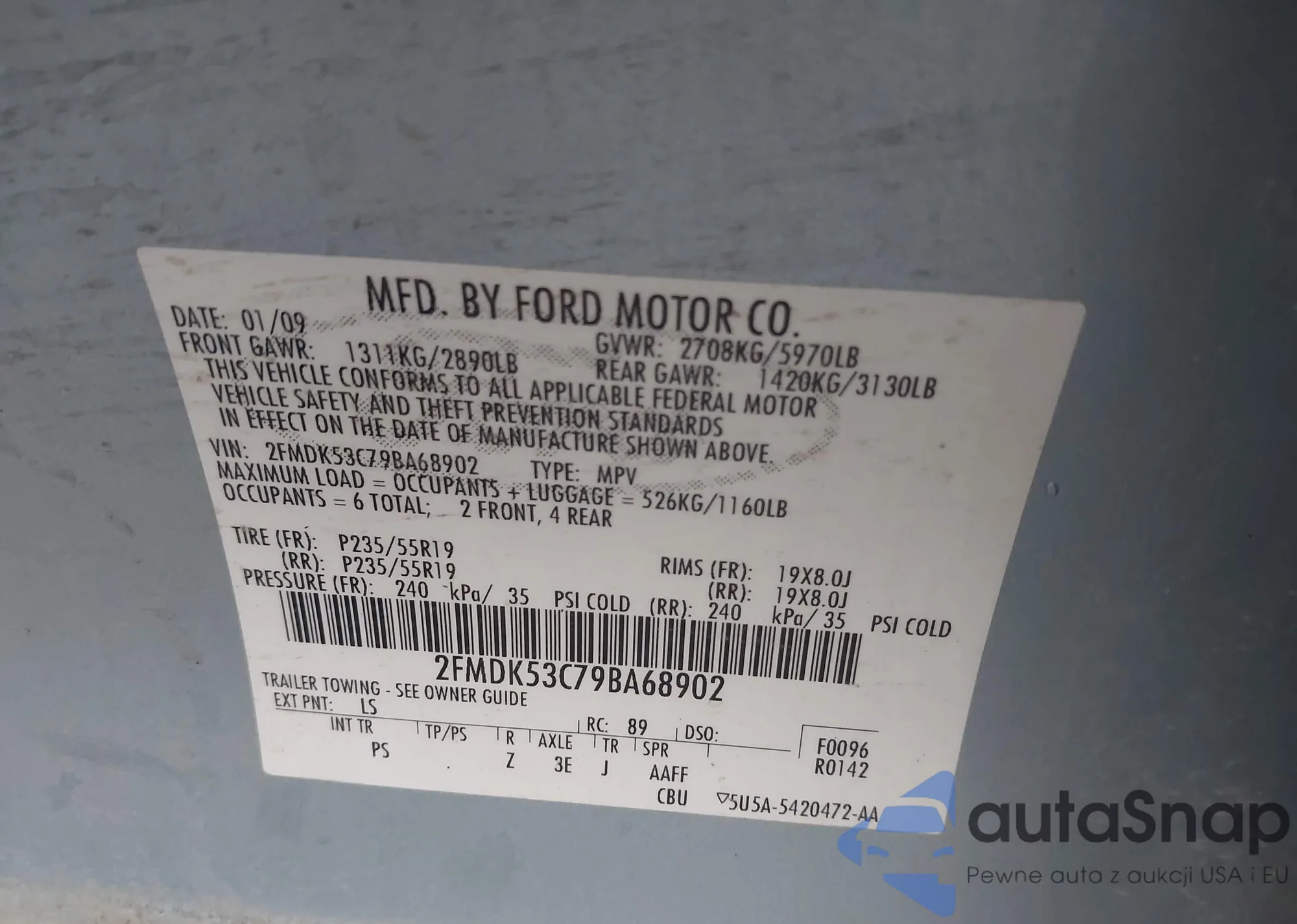 LOT: 44067067 VIN: 2FMDK53C79BA68902