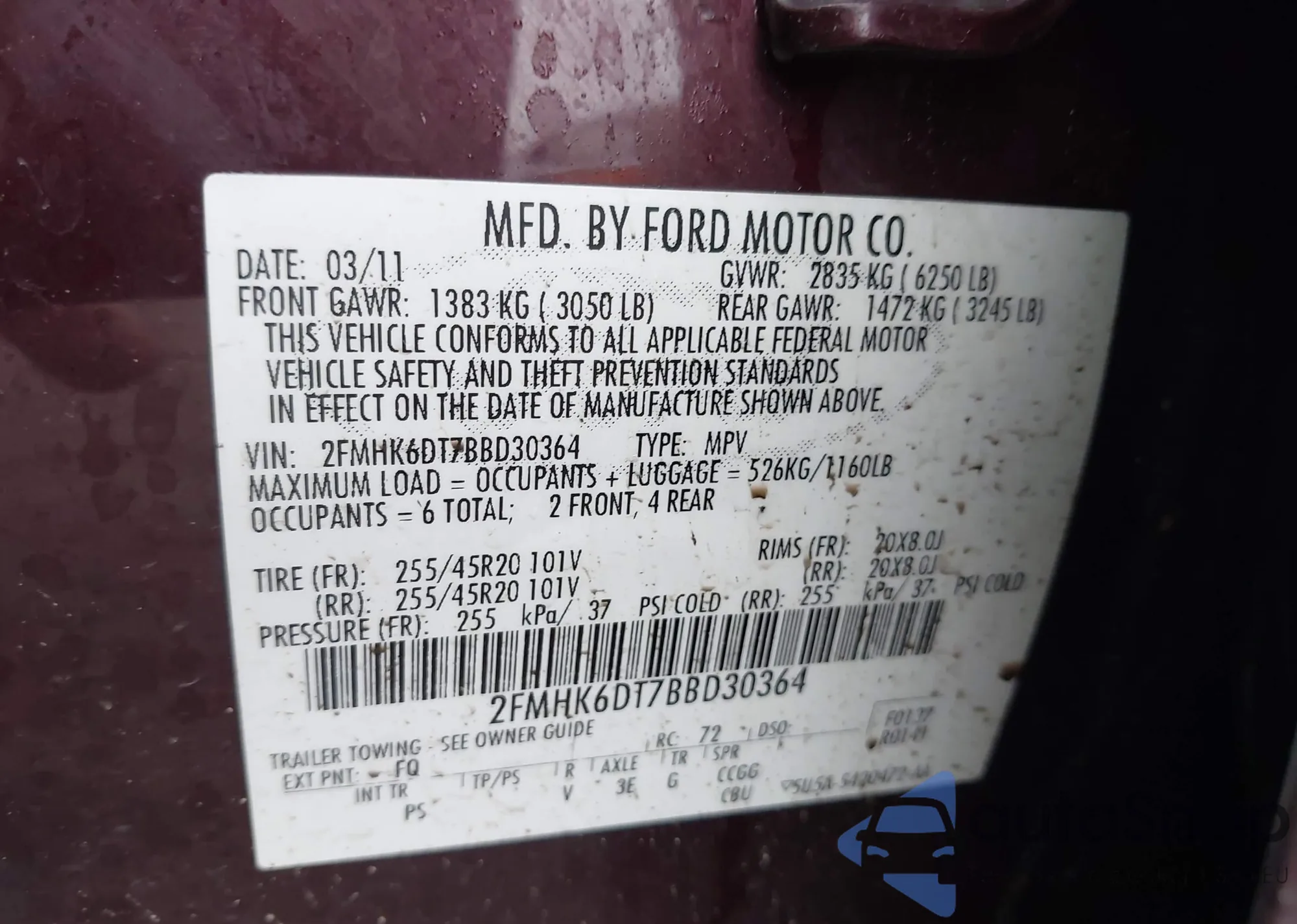 • VIN 2FMHK6DT7BBD30364