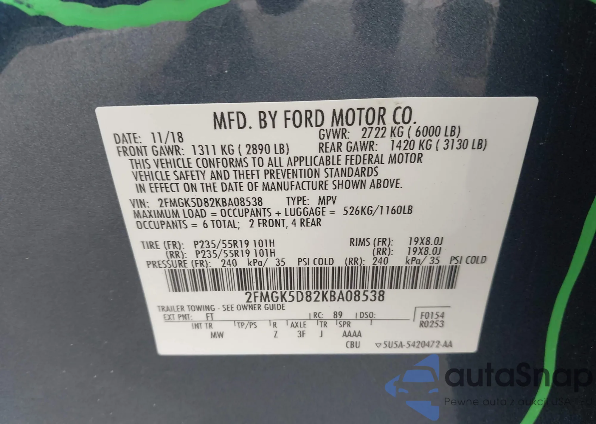 • VIN 2FMGK5D82KBA08538