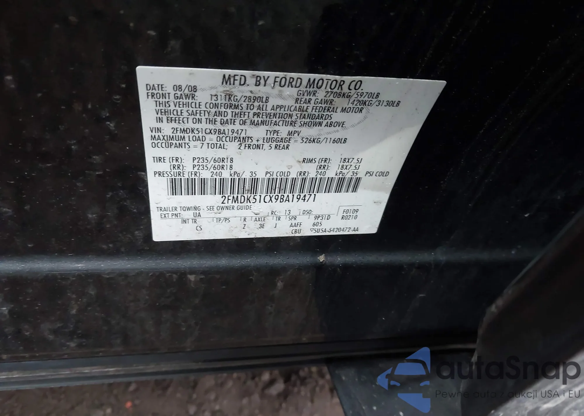 • VIN 2FMDK51CX9BA19471