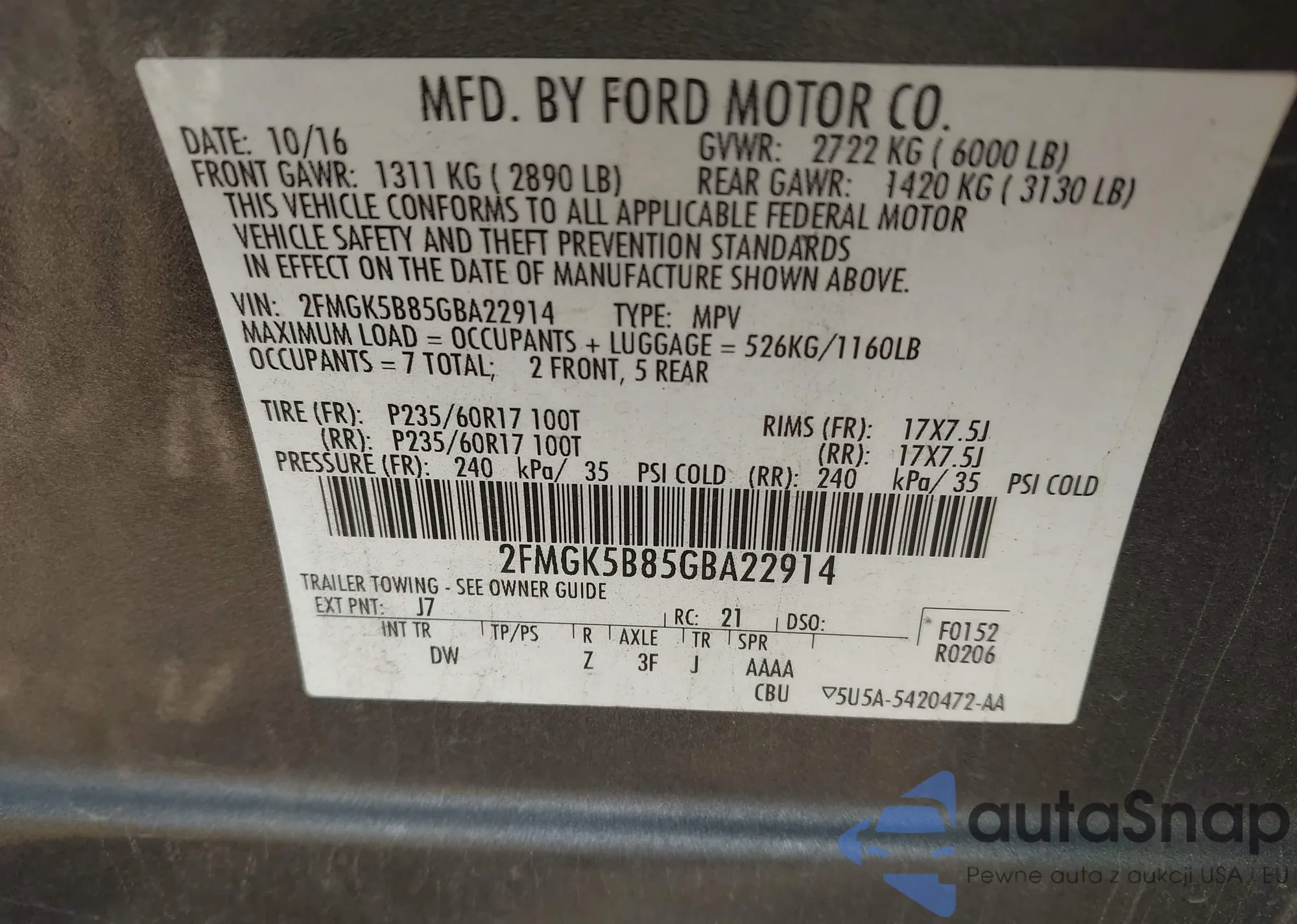 • VIN 2FMGK5B85GBA22914