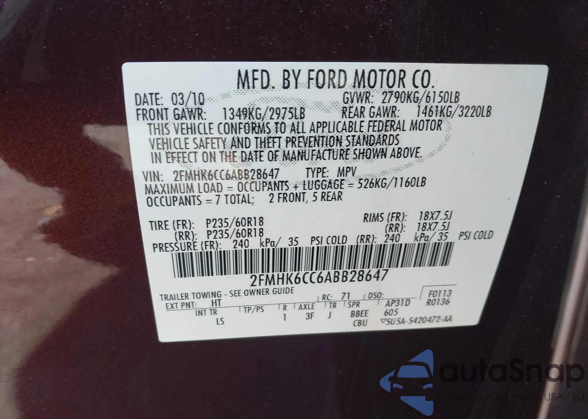 • VIN 2FMHK6CC6ABB28647