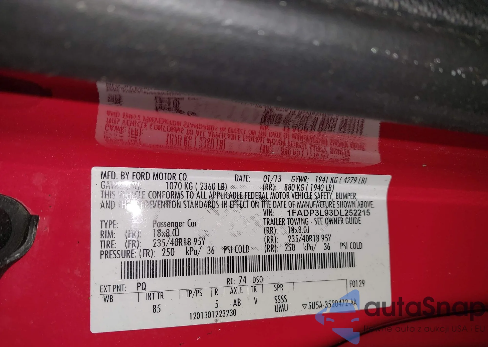 • VIN 1FADP3L93DL252215
