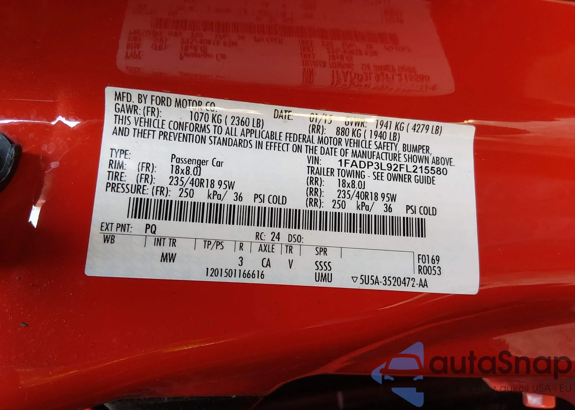 • VIN 1FADP3L92FL215580