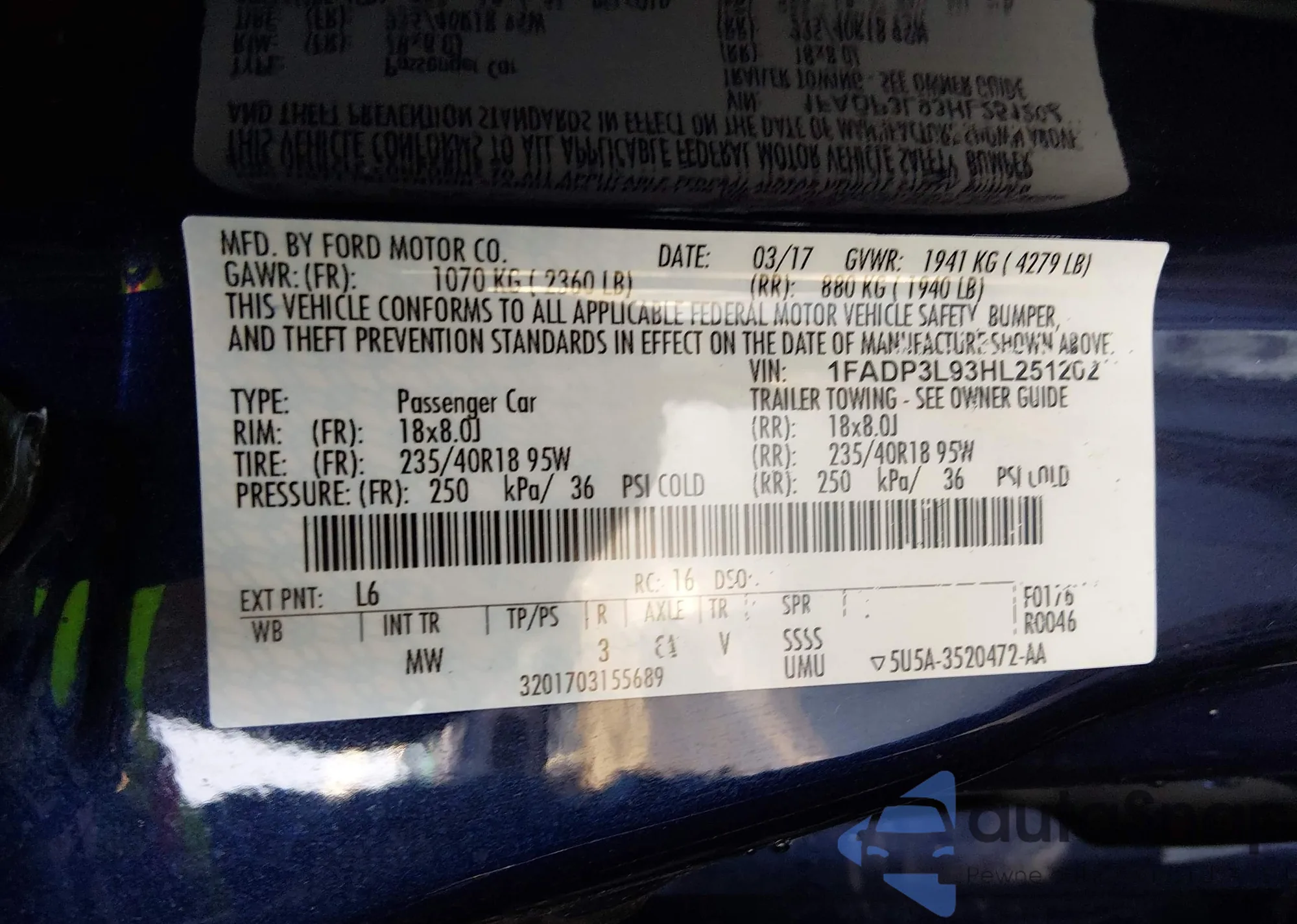 • VIN 1FADP3L93HL251202