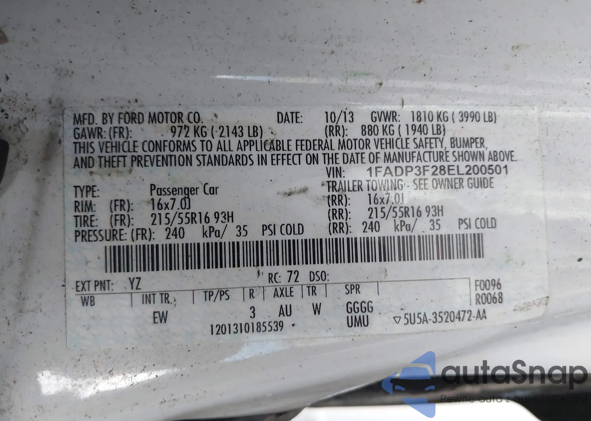 LOT: 43442695 VIN: 1FADP3F28EL200501