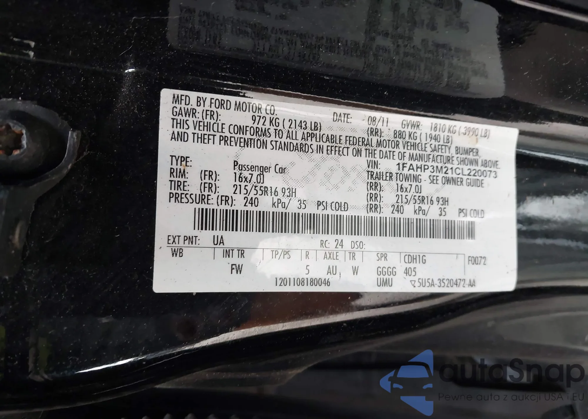 • VIN 1FAHP3N23CL220073