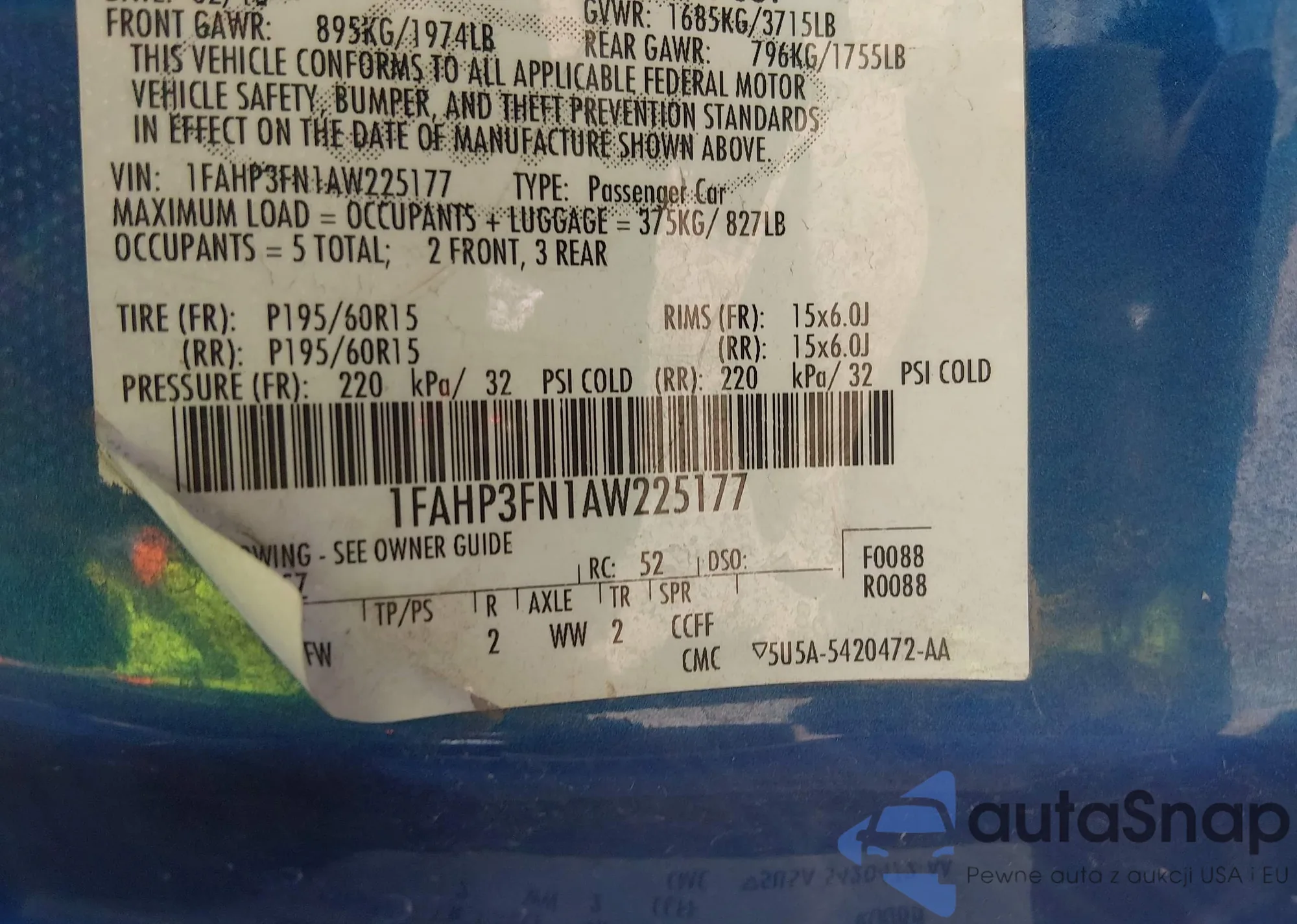 • VIN 1FAHP3FN1AW225177