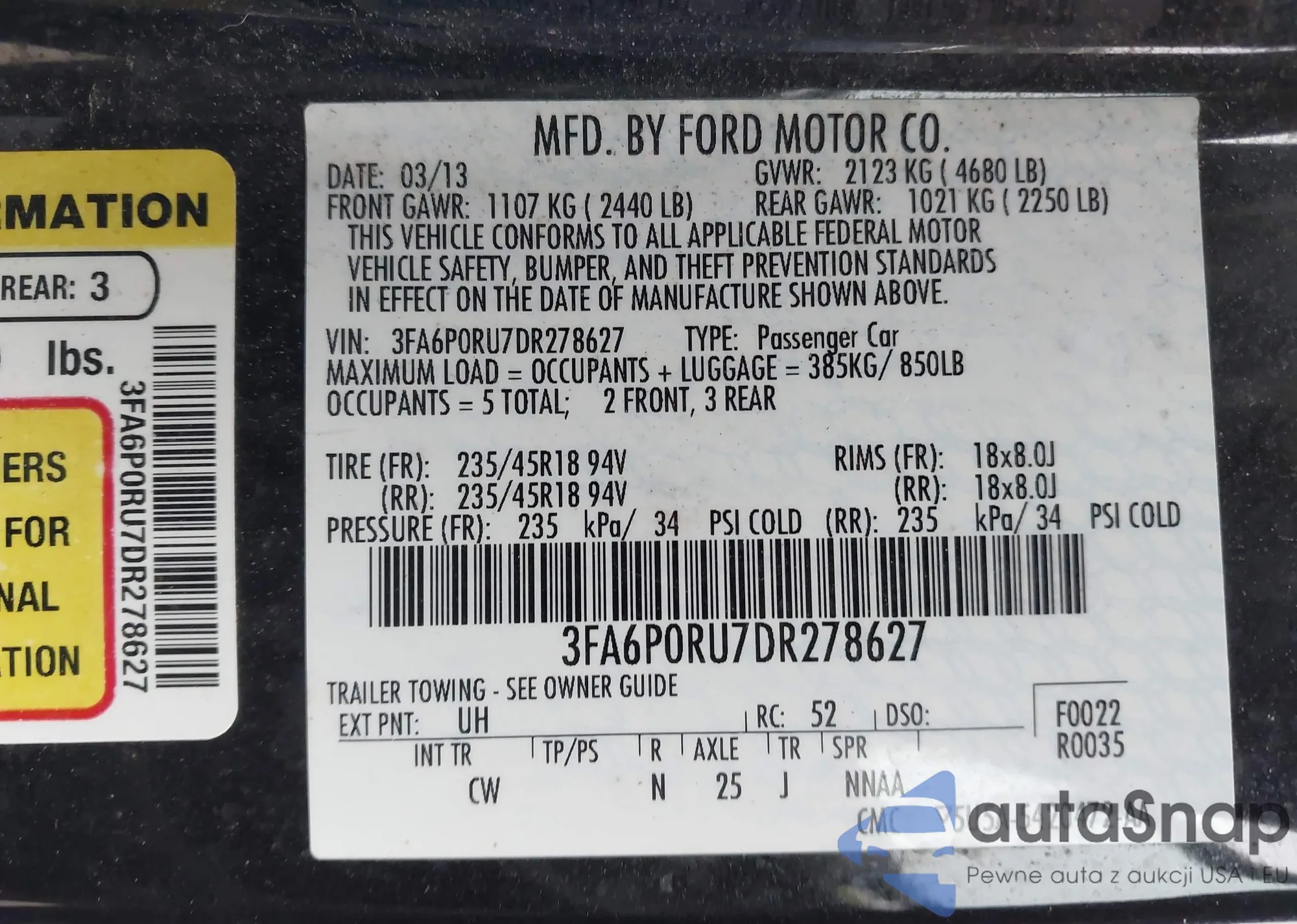 • VIN 3FA6P0RU7DR278627