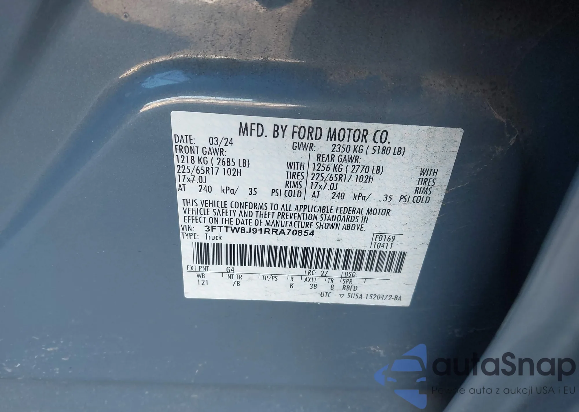 • VIN 3FTTW8JA9SRB56171