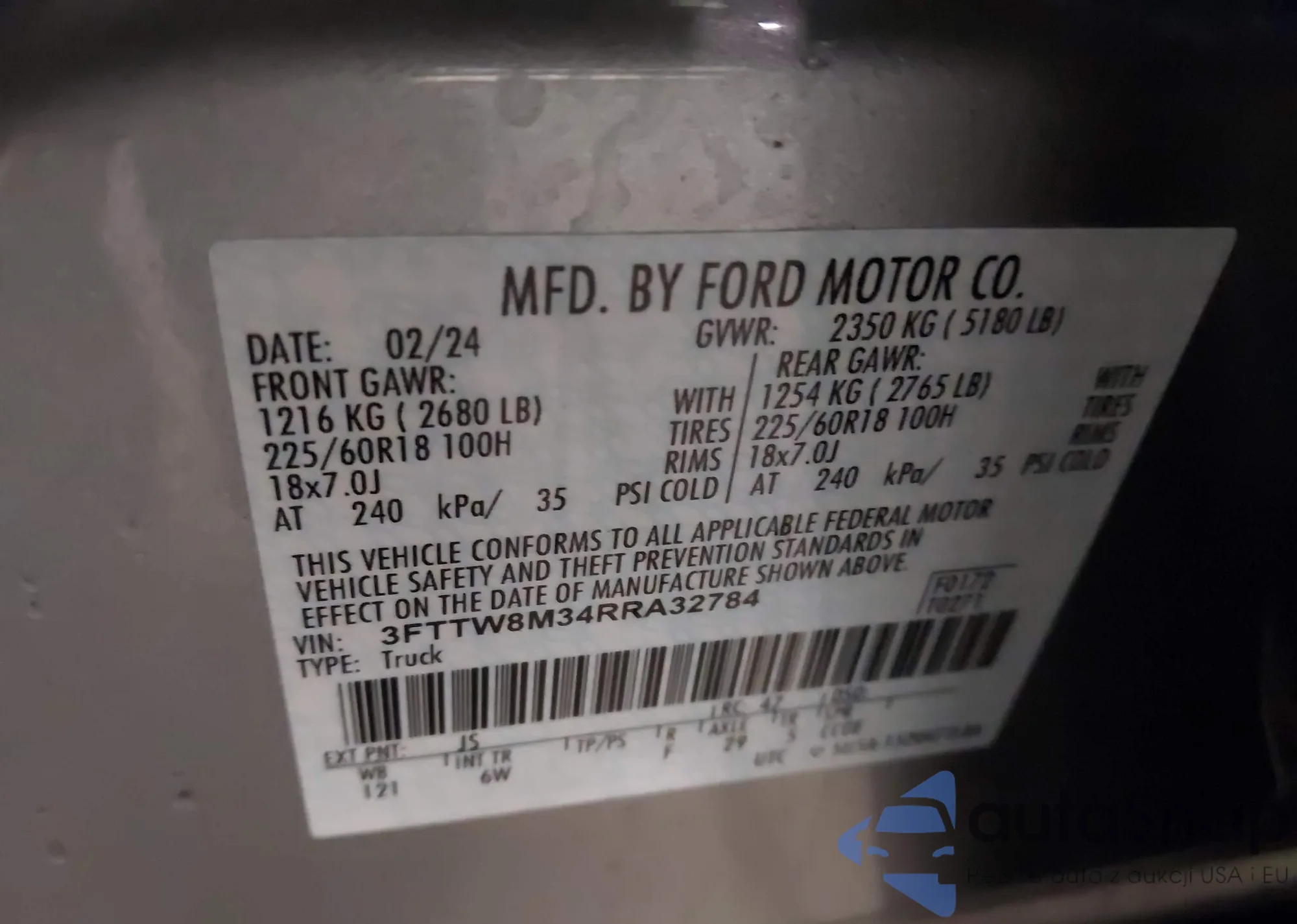 LOT: 44236454 VIN: 3FTTW8M34RRA32784