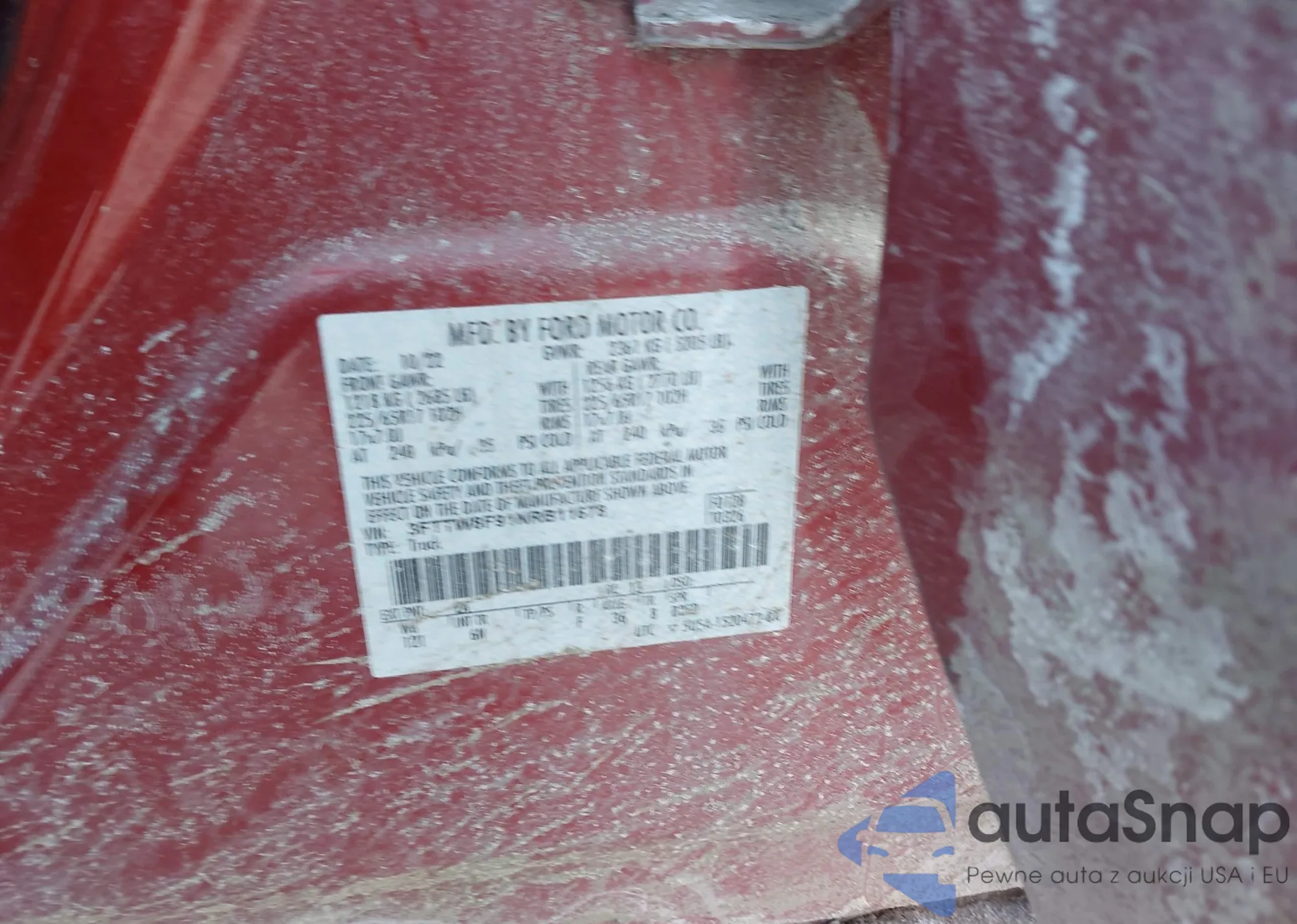 LOT: 44253434 VIN: 3FTTW8F91NRB11678