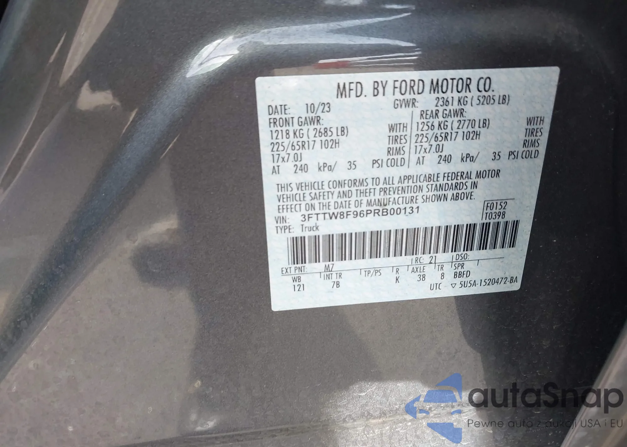 LOT: 44272189 VIN: 3FTTW8F96PRB00131