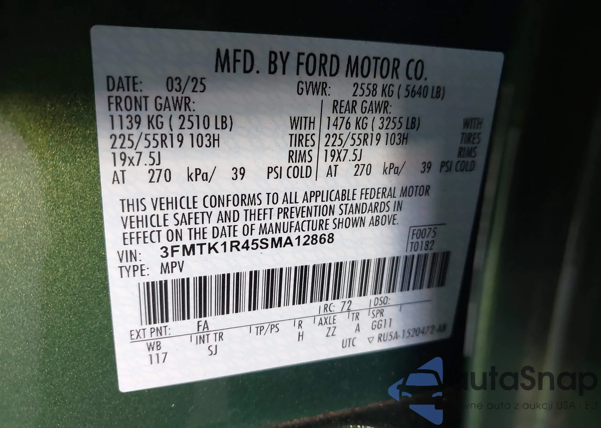 • VIN 3FMTK1R45SMA12868