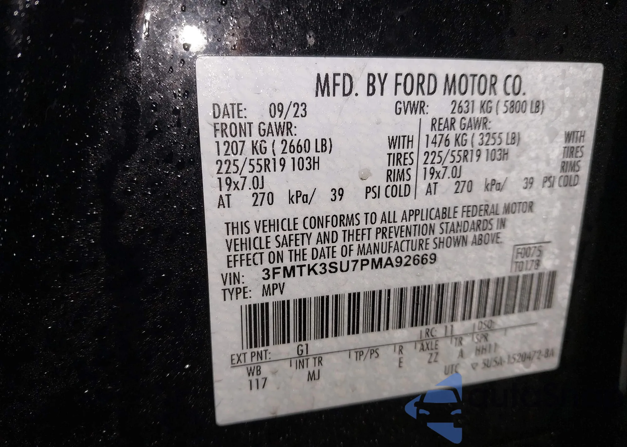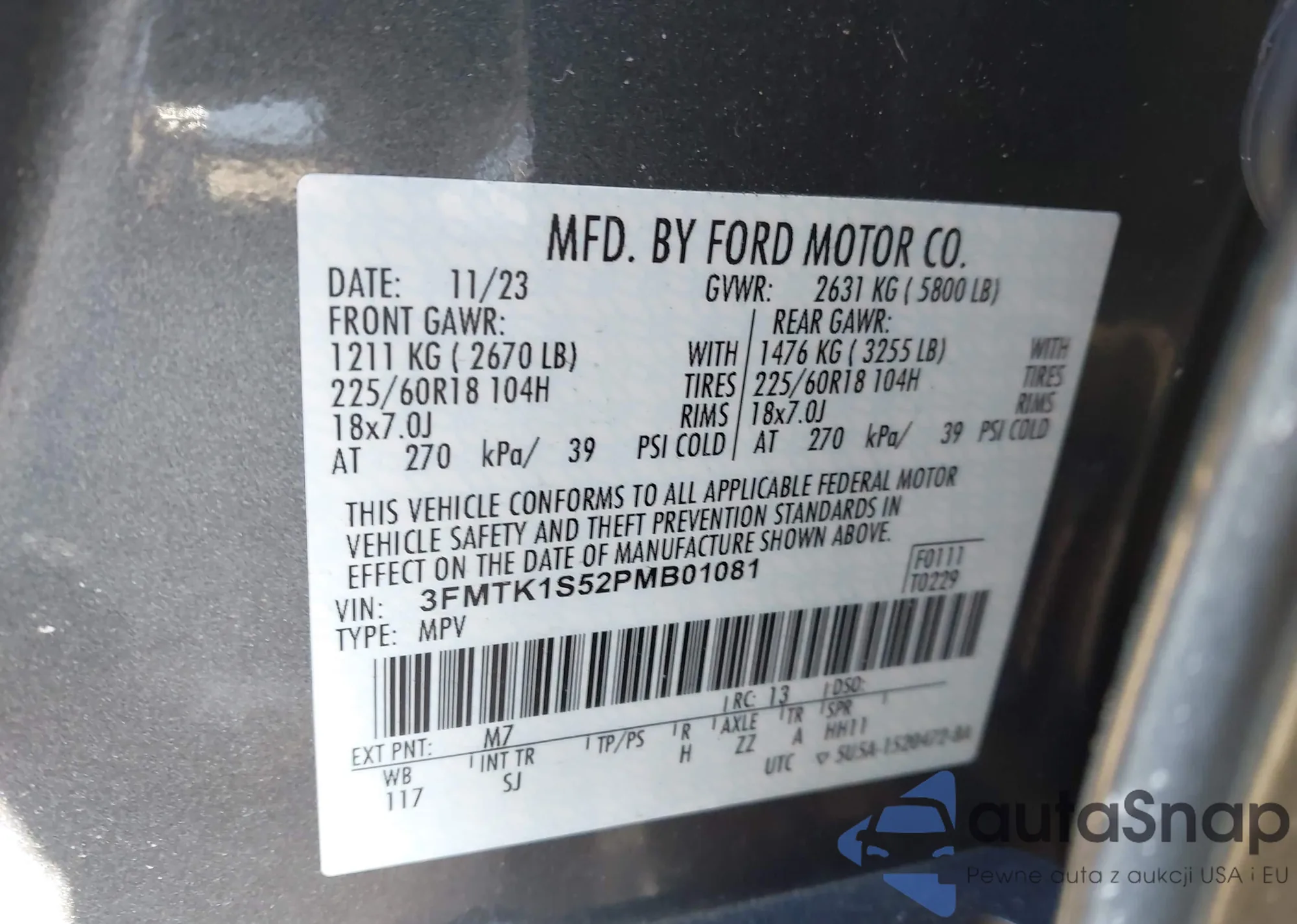 • VIN 3FMTK1S52PMB01081