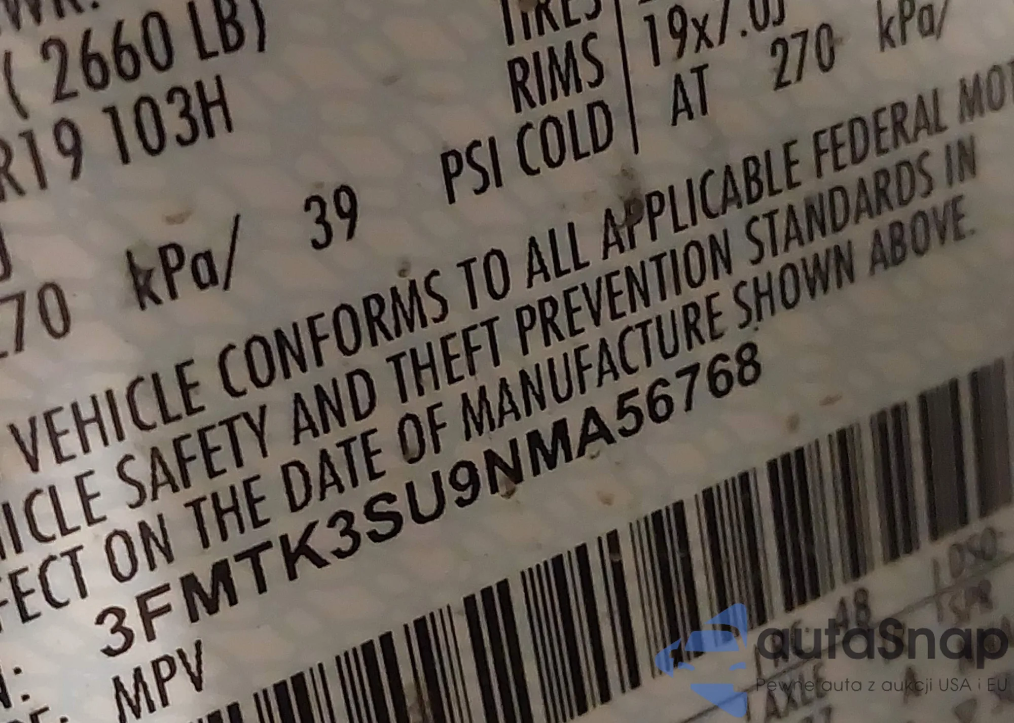 • VIN 3FMTK3SU9NMA56768